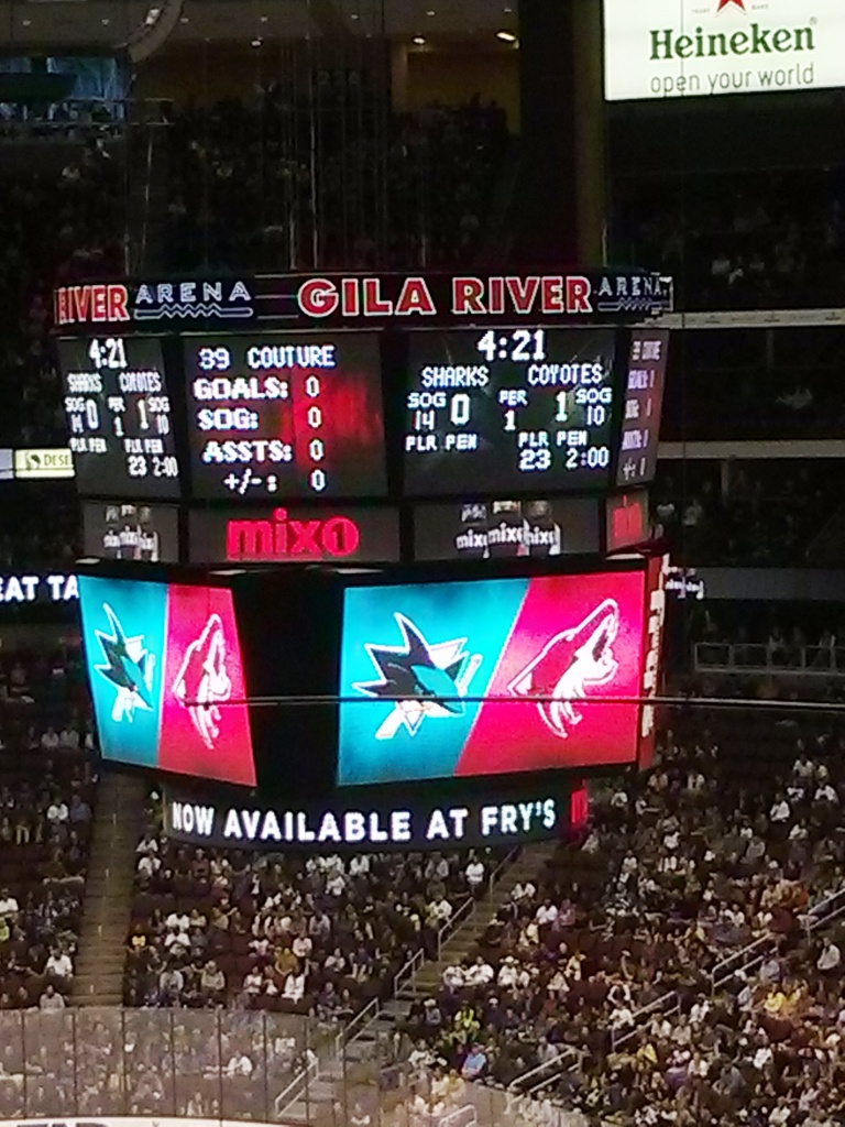 Kindrachuk flew all of the way from Edmonton, Alberta ( avid Oiler Fan ) to watch the only team lower in the standings. That is hockey dedication. He may have been a little needy also wanting to see a home team win. He is one of the original season ticket holders for the Oiler’s. With the new stadium and the draw for seats I hope they don’t end being nose bleed seats. LOL ( although that would be one way so people don’t see you going to a game) Thanks to Bob for organizing a get together supper and the game as it was nice to see him and Barb again. The arena was quite full and the game was a great game to watch which was nice. Nice facility. First time though going to a football or hockey game in Arizona where we had to pay for parking. $15 !! One way to raise the revenue. The young couple beside me were ticket pack holders and when i asked them why the 50/50 draw was so little they were amazed as they thought it is was great. The 50/50 was only 16K. I don’t care what kind of exchange you consider it was extremely small. I believe it is due to all of the budget conscience grey hairs in the building.