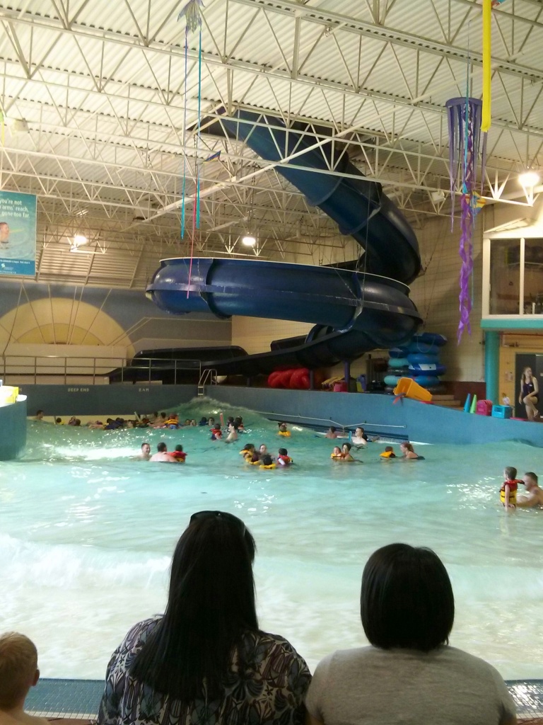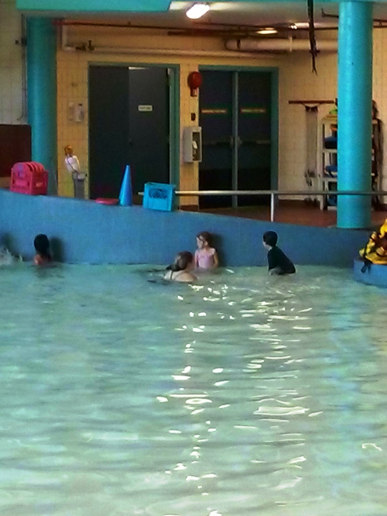 only had three kids in his class so got a lot of attention from the teacher. They turned on the wave pool for the last 15 mins of class. The kids all