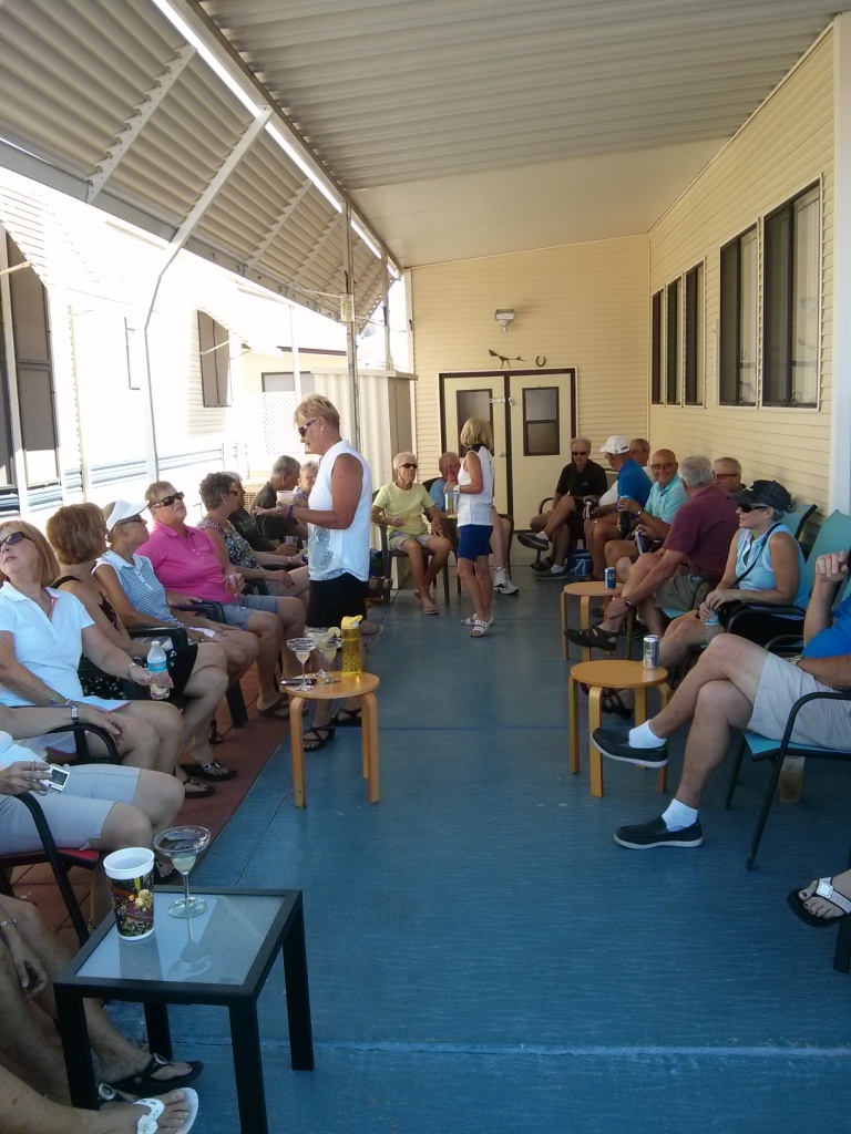 Jackie had her golfing league today with the girls which she really enjoys. They are such a nice group of women. After golfing the organizer Dianne had everyone including their husbands over for a pizza and drink party. It was a lot fun getting to meet everyone and they put on a great party. This is the life !! As I previously stated , this is why we bought into a resort rather than a condo or smaller home community. These people in this resort are so friendly and social it is amazing. I could find a happy hour party everyday if I