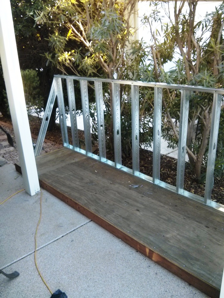 Started working on this knowing it is a long project with the base part being the hardest. I dug the pier blocks into the ground. Went through the gravel and they are resting on a mixture of rock and desert sand which is more like cement. I don’t believe I should get any movement as we have no freeze thaw cycle and the desert clay is very tough. Easy enough to shim if needed.My idea to have the base with 3/4 PWF plywood then cover with hardibacker board to water proof and burn proof it. I will then start to use metal studs and cover with hardibacker. First time with metal so I haven’t decided to buy a metal blade and use the chop saw or snip each piece. It will interesting to figure out the hows to working with metal and understanding the correct way to screw them
