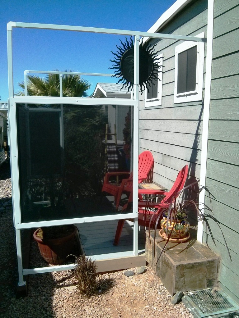 Another wonderful day in paradise. 75 degrees and bright sun. I was up fairly early and worked all day until 7pm with a few interruptions that were quite refreshing and entertaining. Had a coffee in the morning with Bob on his deck for a quite a while. Then drove to pick up my privacy screens. Worked on getting them installed. Had to change a few of my brackets as the screens don’t sit flush with the screws on the wrong side. That took a while and I had to sweat a bit in the full sun. Managed to even cut my finger on the sharp aluminum.Finished the screens and I like it. It will be like our private oasis in the backyard to get the full sun. Once