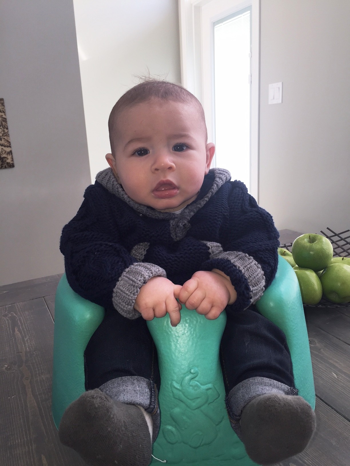 Put our Jackson picture magnet on the fridge. That kid is just so cute.