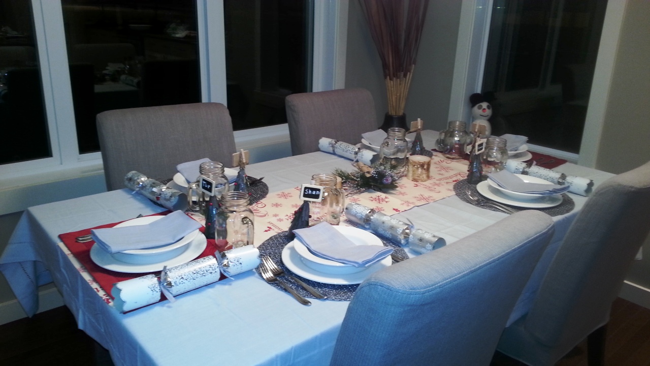 our daughter Victoria’s table set for a Christmas gathering with friends tonight. Aww she is becoming so sophisticated with name plagues and everything. Looks awesome. Much better than the tea parties she had as a child. Soon she will be listening to opera and drinking fine wine. As they get older and are approaching mid thirties things change and they are starting to appreciate the finer things in life. They may even be playing Christmas music in the background. Micheal Buble I expect.