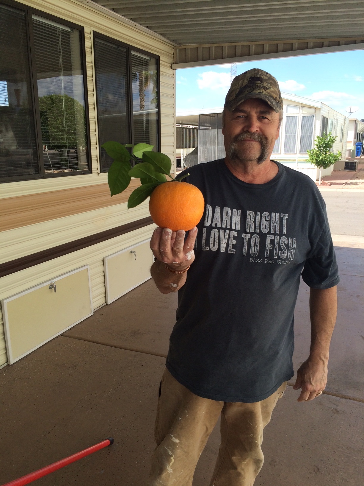 Fred today found a orange in the middle of his tree. This thing is huge ! It is also still very firm. I can only imagine the juice in that thing. He was thinking about drilling a hole in it and adding vodka straight into it. Now that would be fun !
