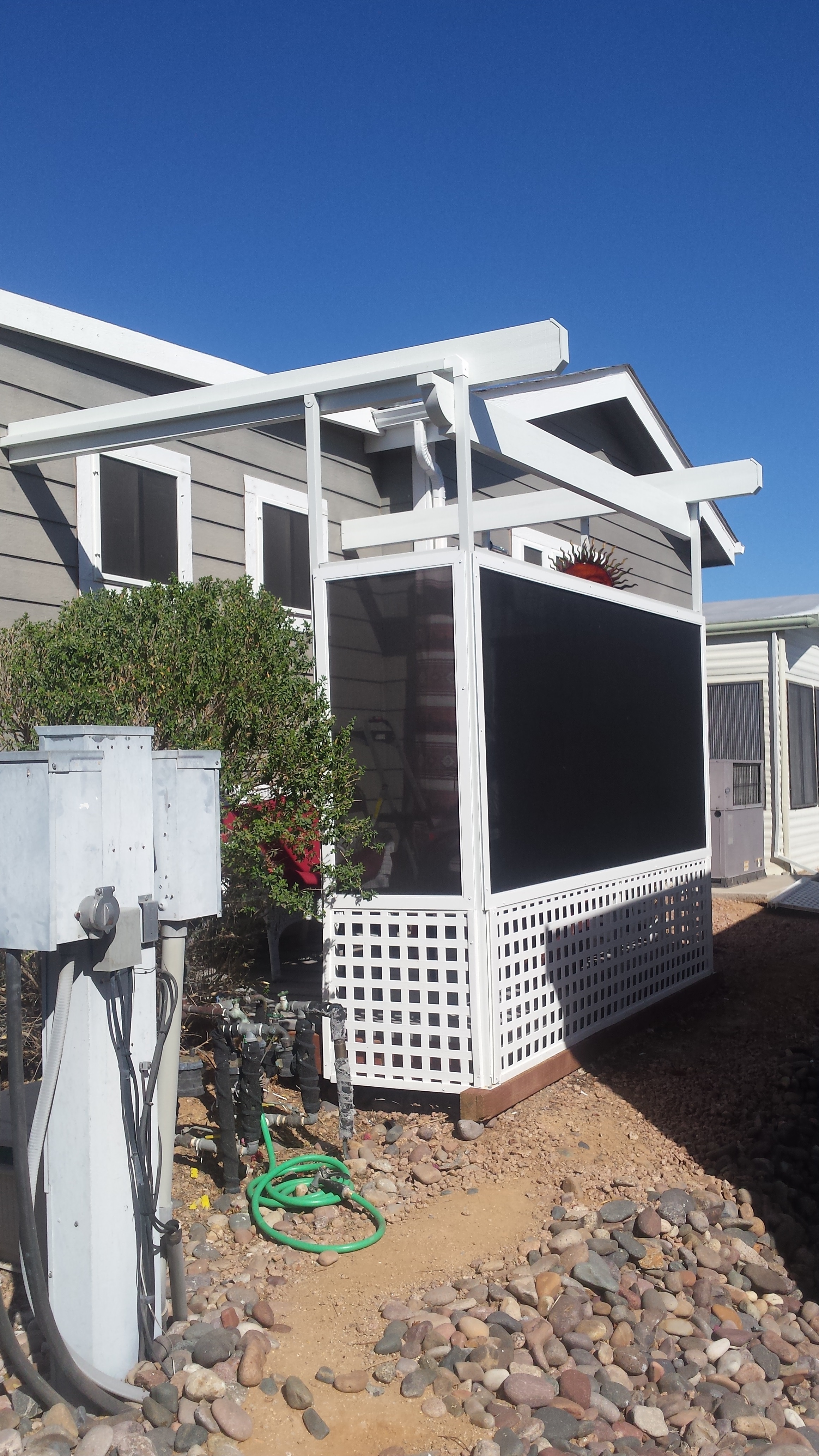 Finished in the cooler afternoon and love it. It is so nice to sit back there and see the beautiful plants and feel the warm of the sun.