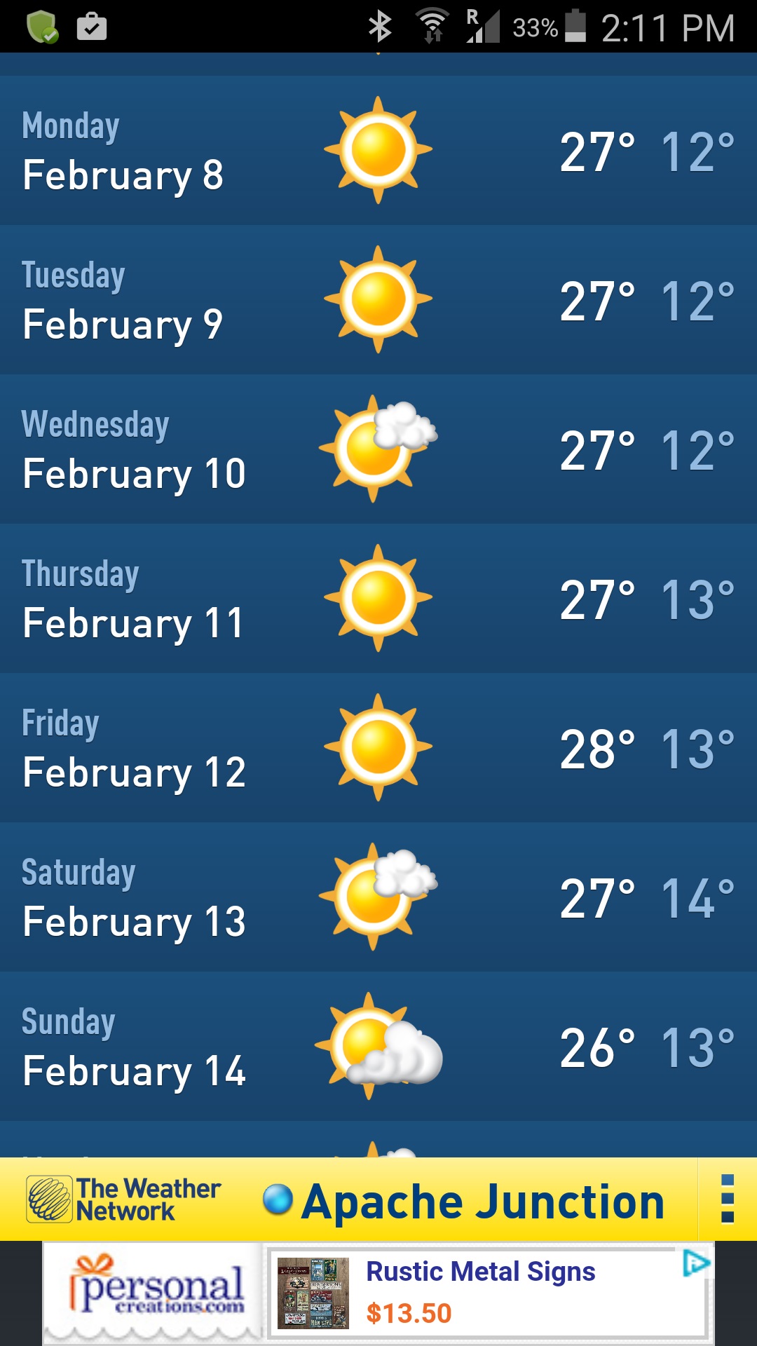 I noticed the weather for next week is still getting warmer. It looks like we will not have a day less than 29 degrees again. That means multiple days over 90 degrees. You got love Arizona.