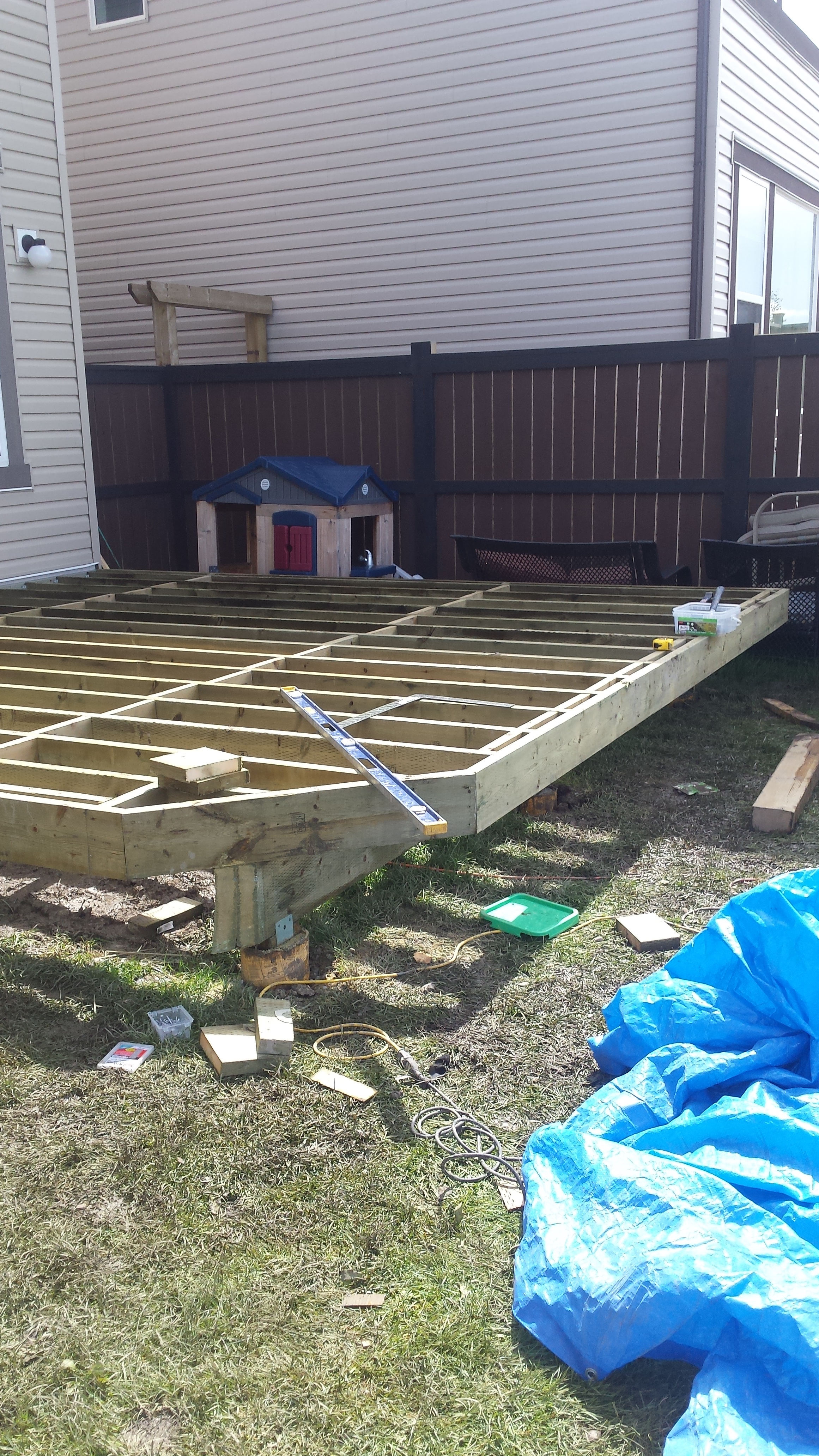 I thought of one easy fix we need to do to the deck frame before the top boards are laid down. It is amazing what you think of in your sleep.