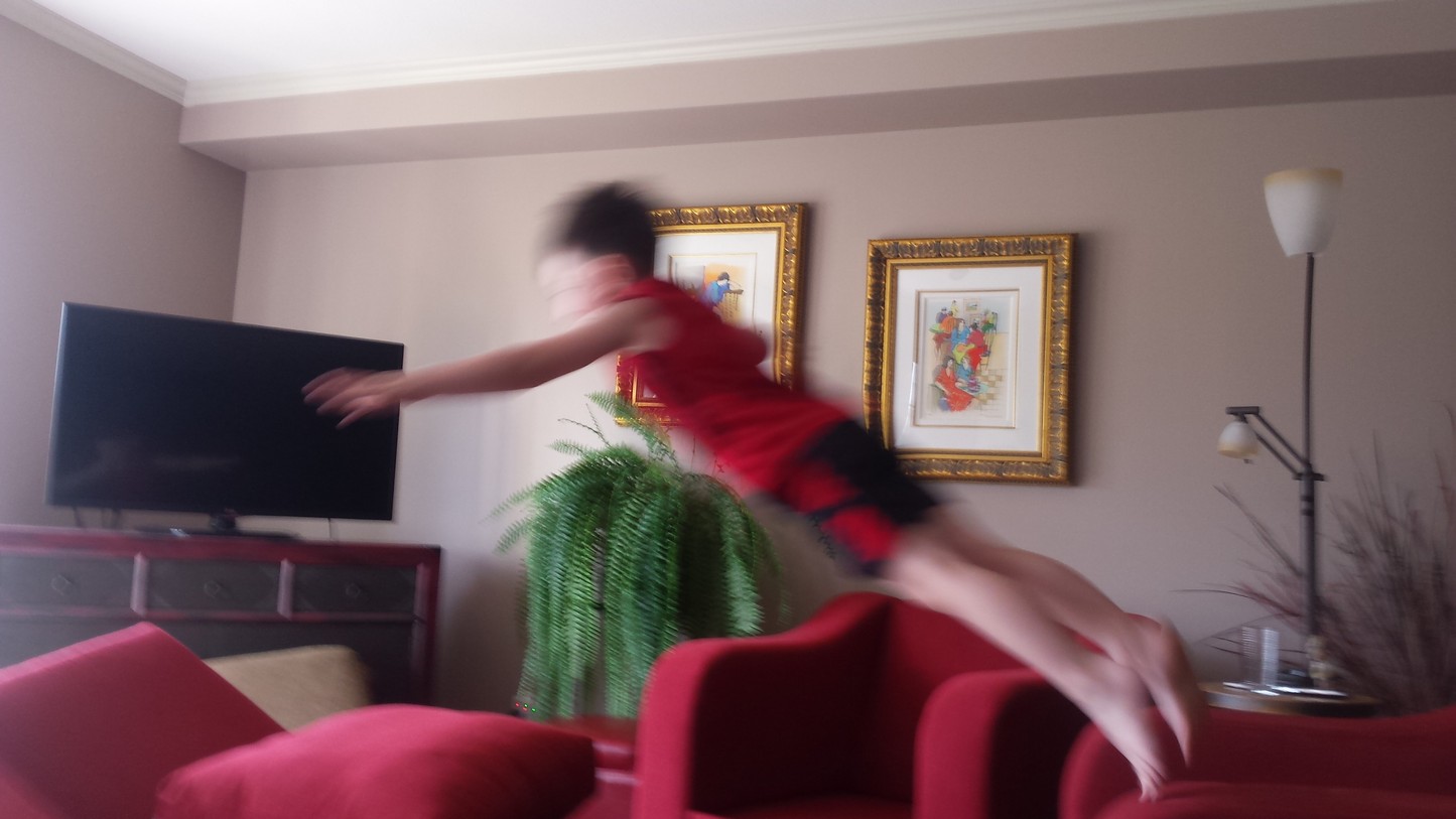 Babysitting Jackson at Grammy and Papa’s house is a good time. Stack cushions as high as you can. Stand on a chair and see how far you can fly. Next the Cirque du Soleil