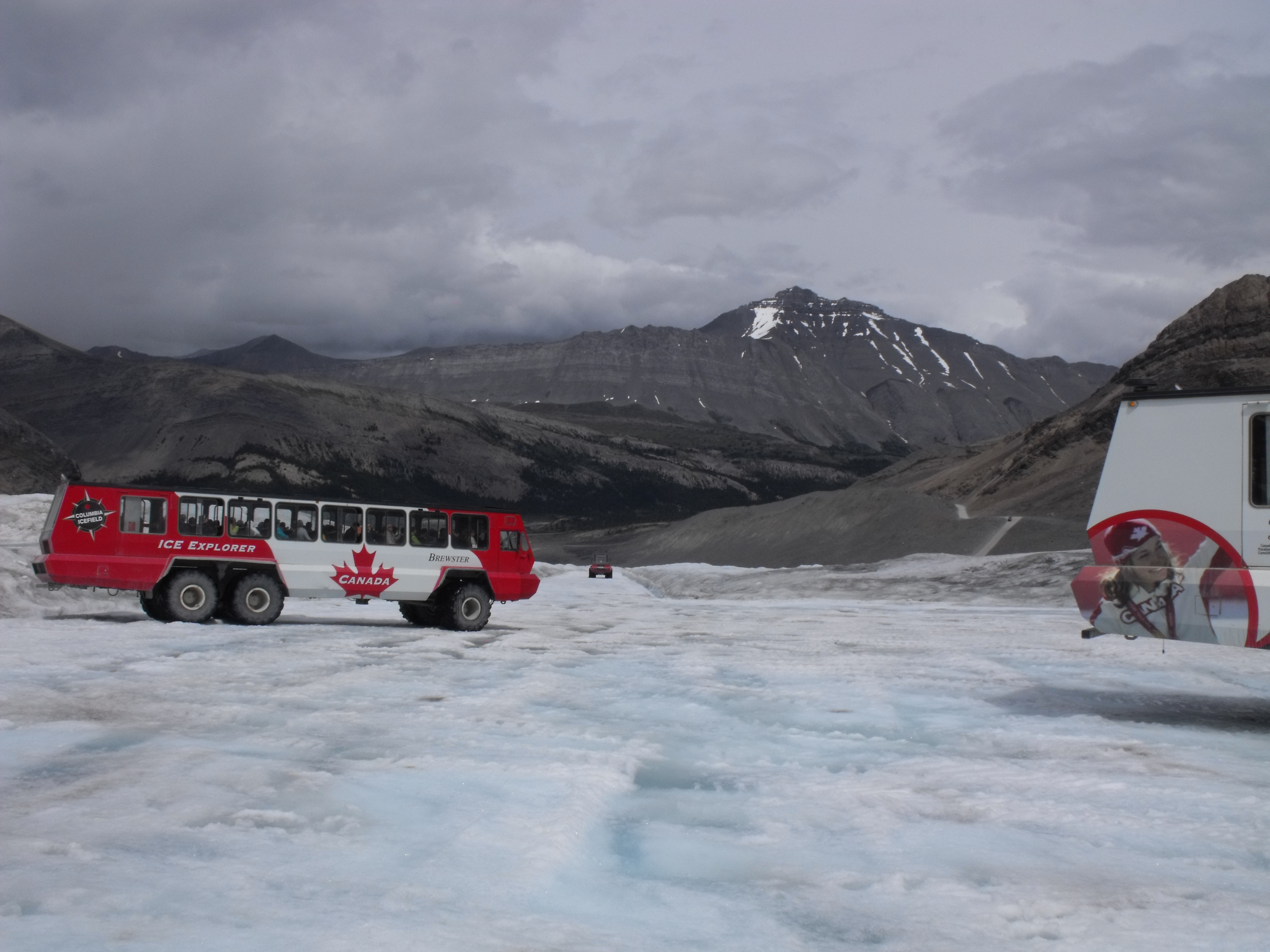 showed and informed us that right here in Alberta is the only spot in the continent of North America where we have a hydrological apex of the continent. The Snow Dome is the only place where when snow melts it can run into three different oceans depending on the river system it follows or all three if it could. The Arctic ocean, the Pacific Ocean and the Atlantic Ocean. That’s pretty amazing. It is also amazing that in 1844 when global warming is recorded to start (PS for you environmentalists, how many cars where around then, how many coal power plants were there) that the field has shrank from where the center is now to the about the ½ mile or mile back. Side note: the global warming and the shrinkage of the glacier is natural. Our rivers would be awful dry if it didn’t happen. But if we didn’t scare people how could we implement a carbon tax and have people accept it. Well for another 3 years anyways. I regress. Try this link and I am going to try a different way also to make this video work. Because it is funny !