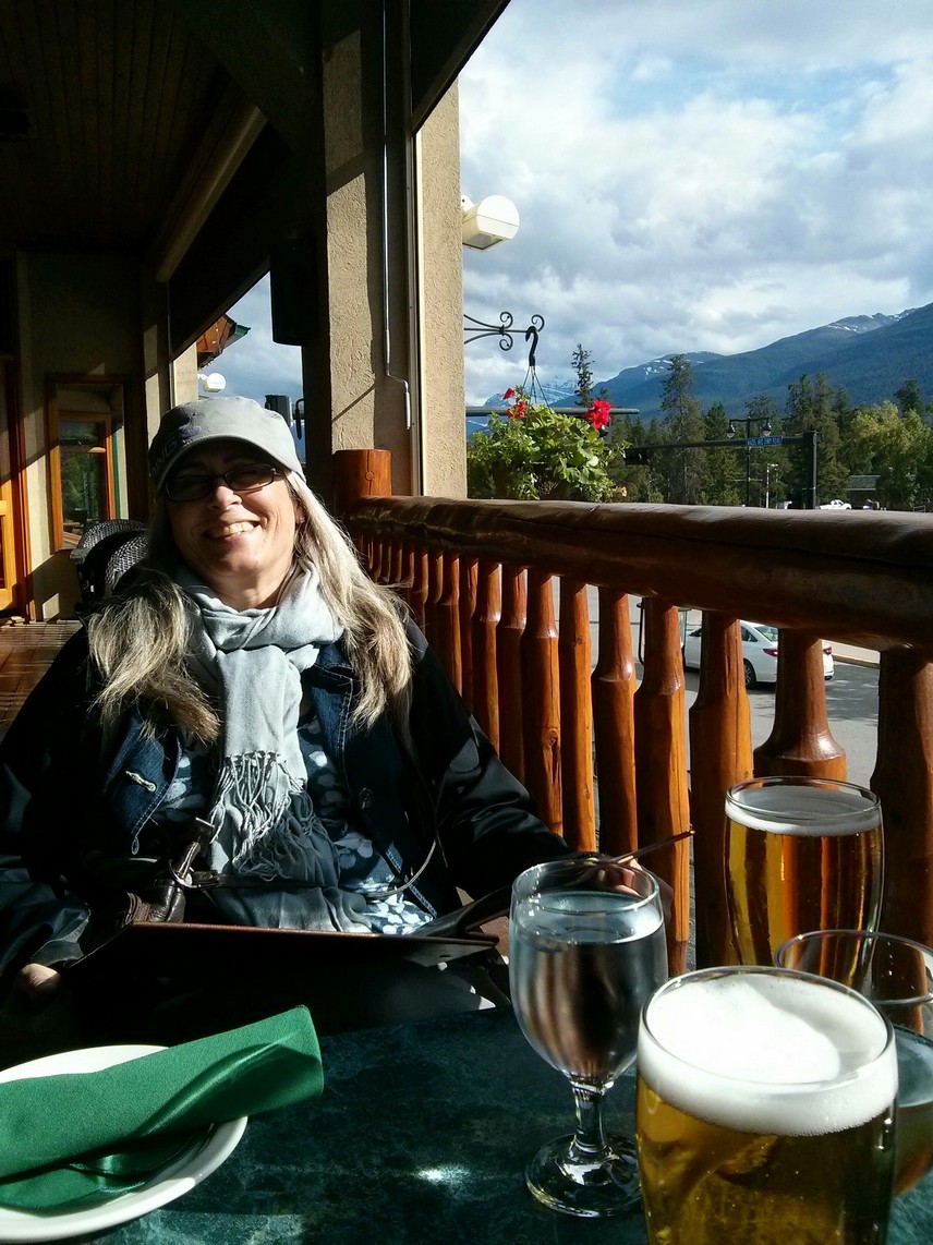 We found numerous other independent restaurants to choose from. We ended up going to the Villa Curiso which advertised as having the nicest patio in town. They did not disappoint. Jackie & I had next to the railing seats facing west which had the full sun on us on the second floor which allowed to see everything around us. It was wonderful sitting on the deck our last night in Jasper. A cold beer and wonderful food was excellent. It was nice and warm and very interesting watching the oodles of people passing by. Each had a story I tried to find that fitted the way they acted or looked. Always fun. A little mean for some but still fun for most. Both of our meals were spectacular. The food pricing was reasonable (a touch high) but the drink pricing were out of line. A Ceaser was $9.95 and a draft beer $ 6.95. The rest ok and the quantity was fine. It was served as fine food and it presented itself as such and tasted as much. After most of the day being cloudy with off and on rain showers we were very fortunate to have the full sun during our supper. Our waiter was a young guy that only has been in Canada three years from India. Spoke great English and a fun guy to talk to. Plans to get his masters in finance in Vancouver next year when he has enough money saved. One of those guys that came to Jasper not knowing anyone and is having fun and making money. Great view, great meal, a nice way to finish off our trip.