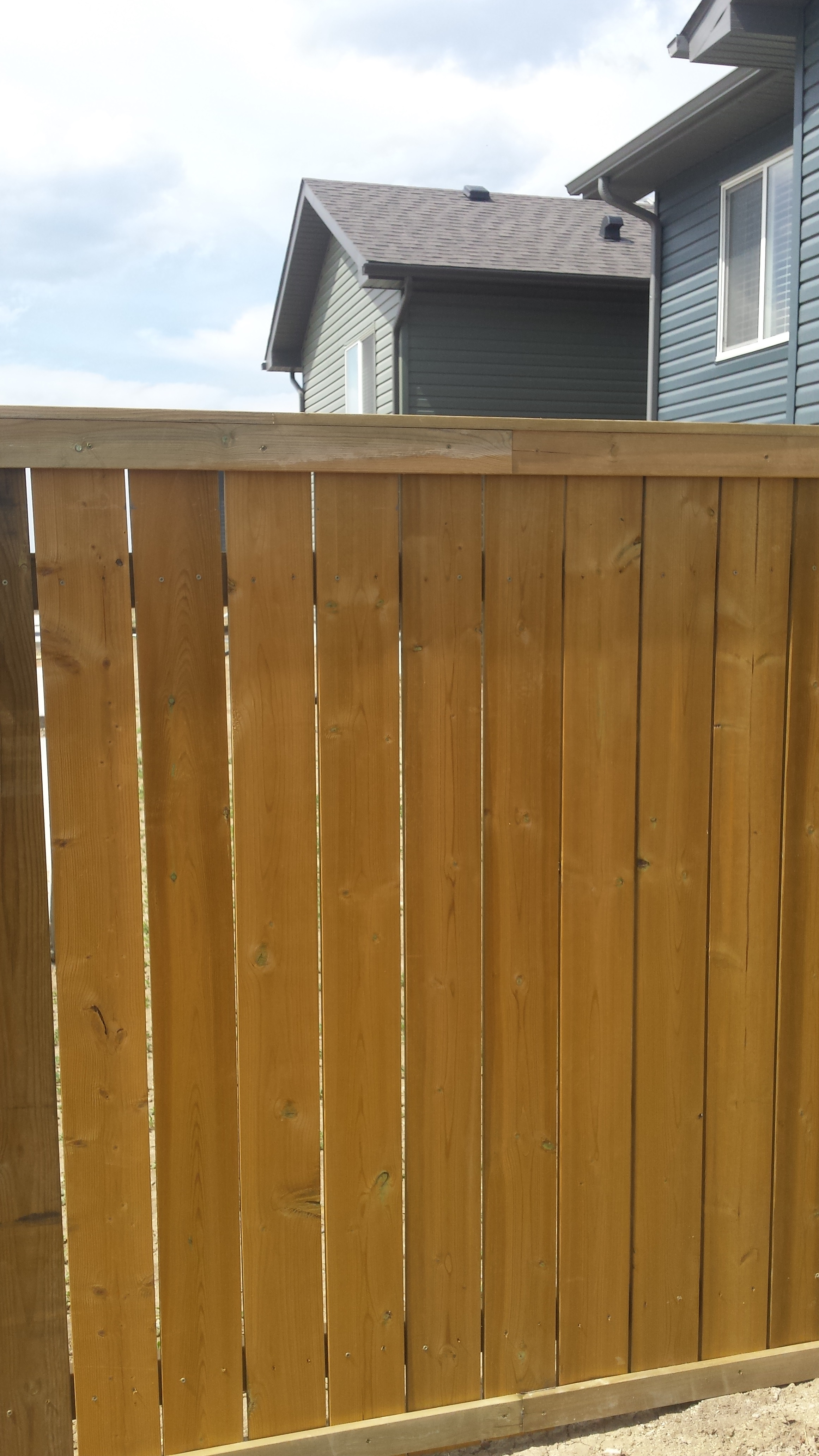 Up and out of bed by 5:30am. Corey picked me up and we headed to Lethbridge to help out the girls with their fence. It was a slower week in the building industry. ( surprised anyone) so Corey was very kind to help me out. Man it was a hot one !. The gauge in the Jeep said 35 degrees at the high point. Another 120 year old record broken.We didn’t have any shade so we had the heat. Luckily the girls had lots of Diet Pepsi and water for us to drink. And we did. Jessica & Penny hired a company to drill the holes and install 4 x 4 posts last year in the fall. They had some friends help them apply the stringers and boards but it was never finished. The friends did what they could which is very nice of them. The post company should never have been paid. The girls wanted a 6 ft fence and the posts were installed every height you could think of and not one of them tall enough. They had 4 ft and 5 f, 6ft heights etc. So when the rails were installed they struggled figuring out where to put them. There was some plan originally to cap ( cover) the 4 x 4 posts all around. This should have been done before the rails were applied. Sooooo after much thought Corey & I agreed we would cut the boards to a reasonable height and cap them and not worry about the post