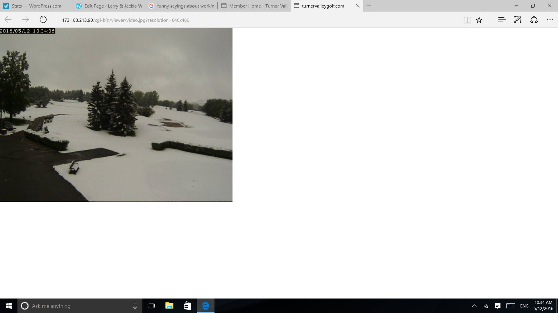 Well I was supposed to golf this morning in my men’s league. I checked the weather and emailed the organizer I wouldn’t be attending this week. Mix of rain and snow and only a high of 6 degrees. Not my idea of fun golfing. A few minutes later a email comes saying it was cancelled today. Here is a picture of the web cam of our course today.