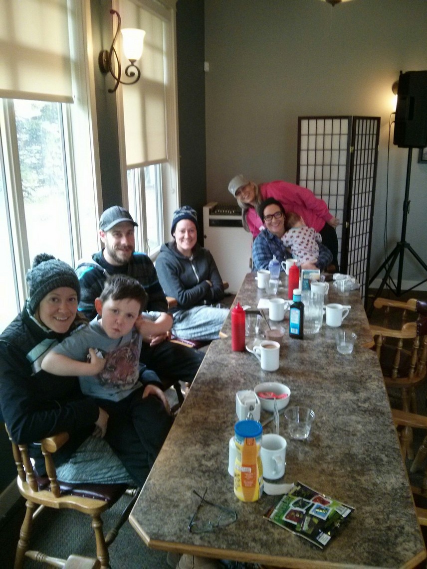 So we did a lot of drinking , a lot of talking and visiting and we actually got one golf game in on the weekend. The course was neat as it was a 9 hole that was expanded. The first nine were like an executive nine and the second nine like a traditional course. It was a fun course to play. Jackson and Katin walked the 18 holes with us. To have a 4-year-old do that was amazing. As I said the kids had fun and were incredibly well-behaved. On Sunday it was raining during breakfast hour so we walked up to the clubhouse and had a perfect breakfast. The diner is a perfect looking place and has great food. The sausages were made from a local meat shop and were spiced perfectly. The owners are wonderful and extremely helpful with everything. Everyone that came to eat thoroughly enjoyed it. Plus it was raining so I would have had to cook inside or get wet. Sunday afternoon we headed to the lounge to watch the Canada/Finand final hockey game. Frosted mugs of beer and fantastic tasting chicken wings. Great wings in fact that rival any place I have been. The traditional Franks Hot sauce ones and Salt & Pepper. It was a fun way to spend the afternoon especially as it was wet and cold outside. OUR team played very well. Funny how players when they leave a toxic work environment of losing all the time perform. The Oiler’s provided the goalie and the player with the winning goal. If only they could play like that in Edmonton the Oilers may finish out of the basement.