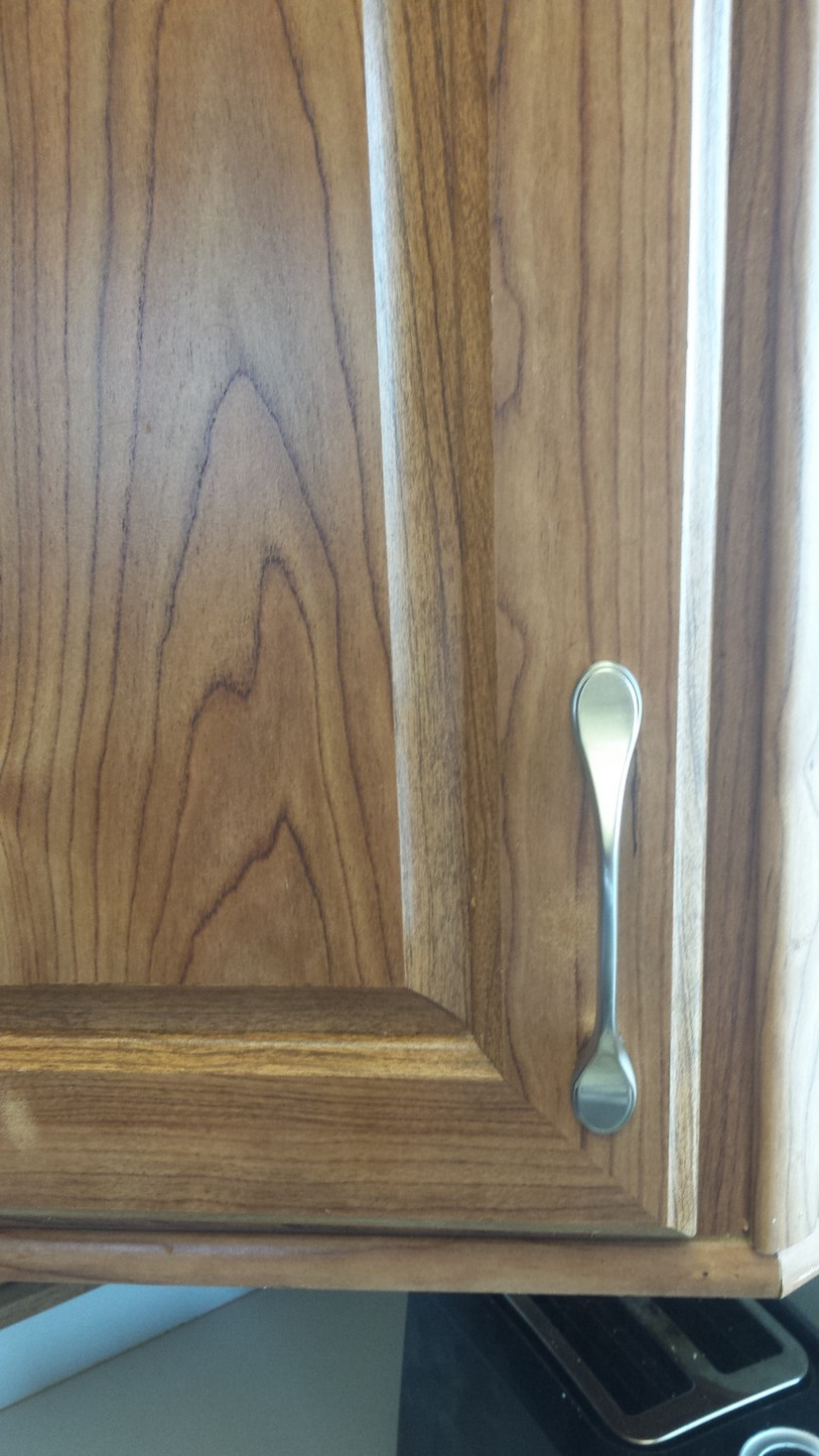 A great day as I didn’t wake up until I was supposed to as I didn’t have to be anywhere early. I texted Mel to see about his timing to start his cabinet pulls. He had sent a text earlier but for some reason don’t go thru but we finally connected. I got over there and after a discussion with Fred & Mel he was convinced to buy new pulls. His pulls he brought from Canada would have been a nightmare. There are times when money is secondary to labour and pain. He had started to fill holes ( two holes per door) and they were going to drill two new holes to make the pulls work. Convinced I took Mel to Lowes to check out the costs. We found a nice contemporary pull in a contractor pack for $2.00 a pull.