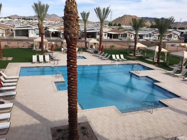 This is the 4th pool complex in the park and is brand new. It looks fantastic and we can’t wait to try it. Notice all of the new homes that are selling like mad behind the pool. Typically during peak season it is hard to find a lounge chair at the pools.Hopefully now with this 4th pool it will be a little less busy. There are cabana’s, fire pits and seating area’s with lots of palm trees for shade. Very nice. Can’t wait until we get there to enjoy. As I said before I am going for two weeks in Nov with Fred and Mel to build a deck, enclose a patio, golf and relax. Then Jackie & I will go the first week of Jan and stay until April.