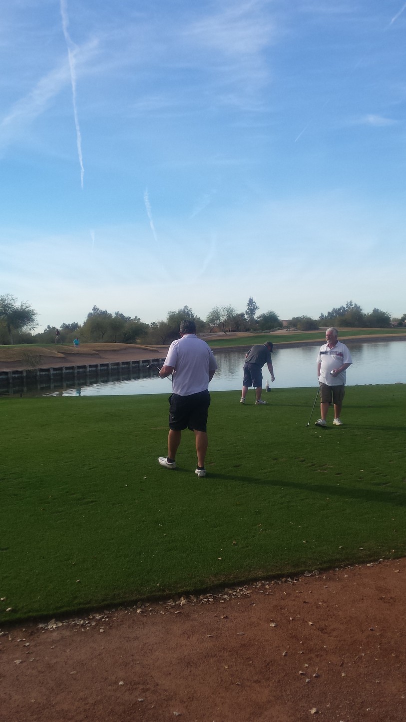 Good thing for GPS. Sandy had picked up George at the Legacy complex and usually if I have been to a place once I can remember the roads system fairly well to get back again. This time with Sandy taking every back road in Phoenix I didn’t have a clue so I loaded my GPS and rightly so very needed. I took the more direct route but didn’t see the town like the first time. LOL Amazing a foreigner knows the road system so well but he takes the back roads to Whirlwind also. Arrived at the golf course and this complex is beautiful. It looks like an upscale resort and delivers with the look of the buildings and pools etc. Plus the golf course is exceptional and has a sister course right next door.