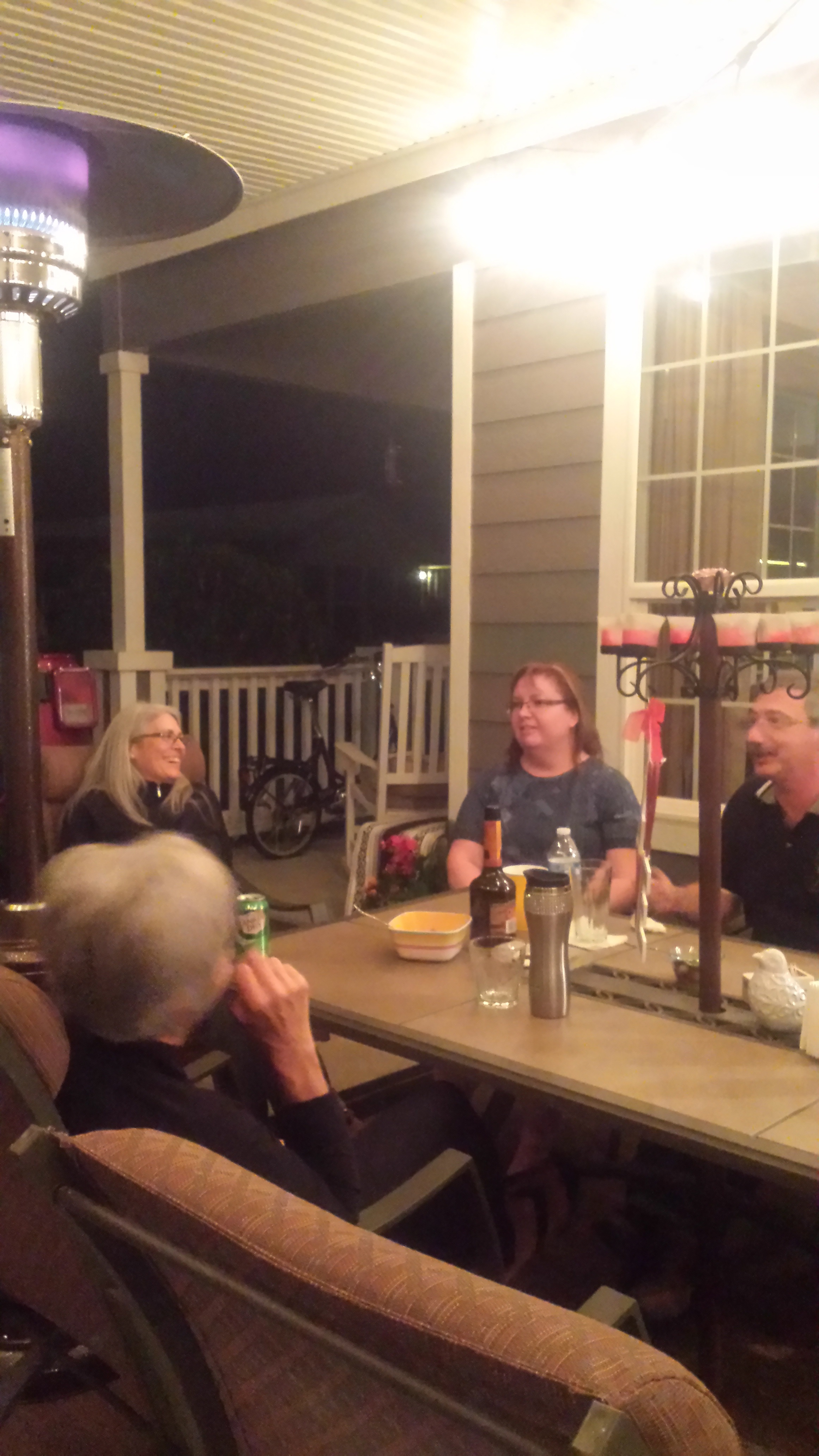 After burgers Pat, Bob, Jackie, Jenny, Kieth and I came back to our house for a few rye and cokes. I discovered that Coke does taste better than Diet Coke or Pepsi with rye. Turned on the patio heater and sat outside until nearly 11pm. Two fingers drinks tonight but enough of them the head could hurt especially after all of the beer. Fun conversation.