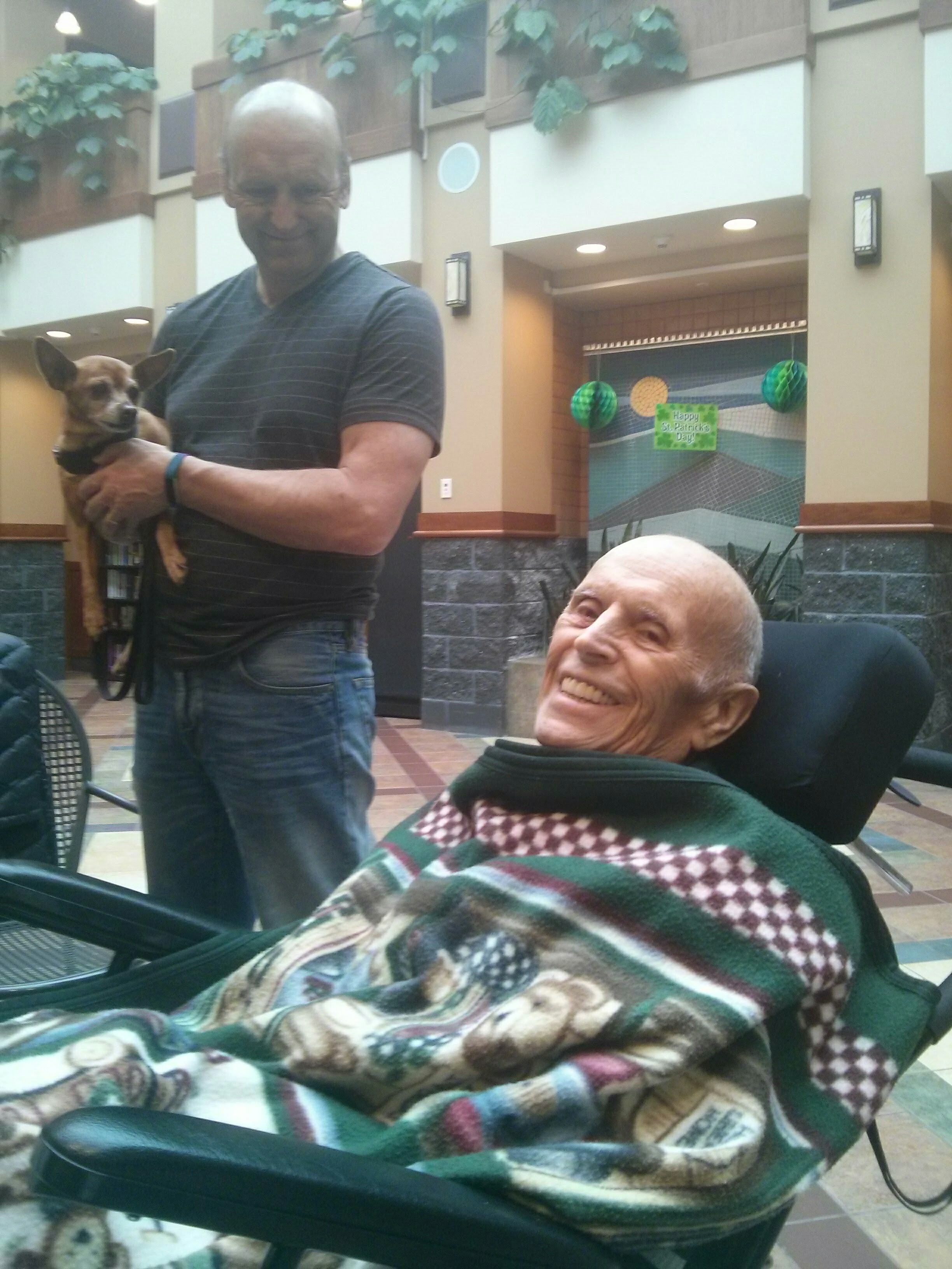Peter having a good day. Jackie flew back home every two weeks to visit and care for Peter as his health was failing.