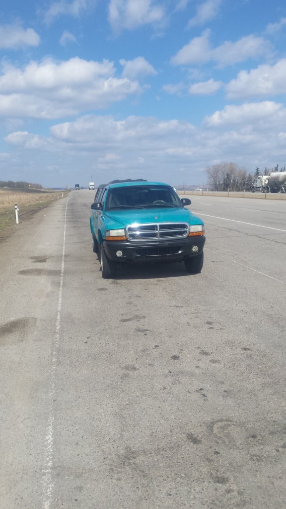 A quick stop at Tim’s ( any Tim’s in a Esso station was open on Christmas Day) and then on the road.Half way to Red Deer a car pulled rapidly over to the shoulder and younger guy runs out of the car into the ditch. The driver chases after him and starts tucking and wrestling with him as he is trying to jump over the fence to get away. I said to Jackie ” It looks the first guy didn’t like his onesie he got for Christmas and the other guy is saying sorry and ran away ” Just an odd sight to see.