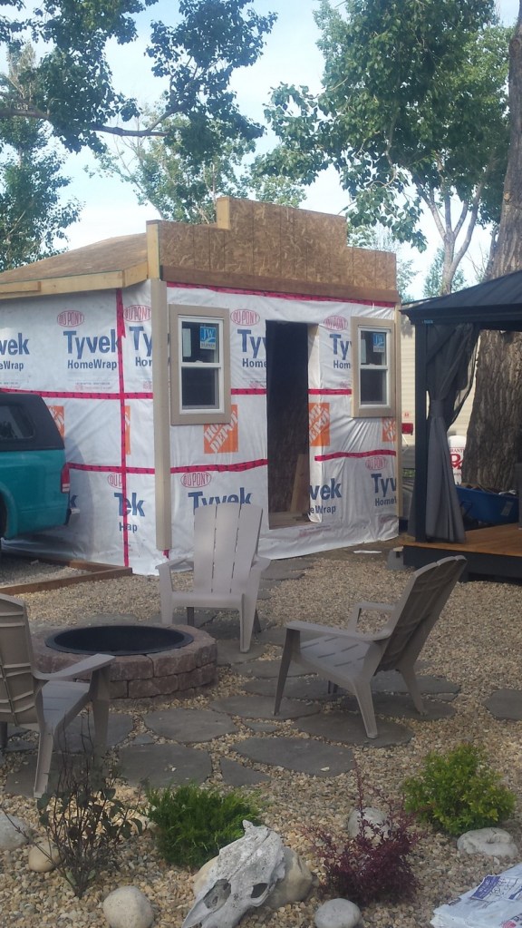 First of three sheds Fred & I built. This one at Fred’s lot. First time using a ridge beam and building our own rafters. Was a lot of fun and turned out perfect.