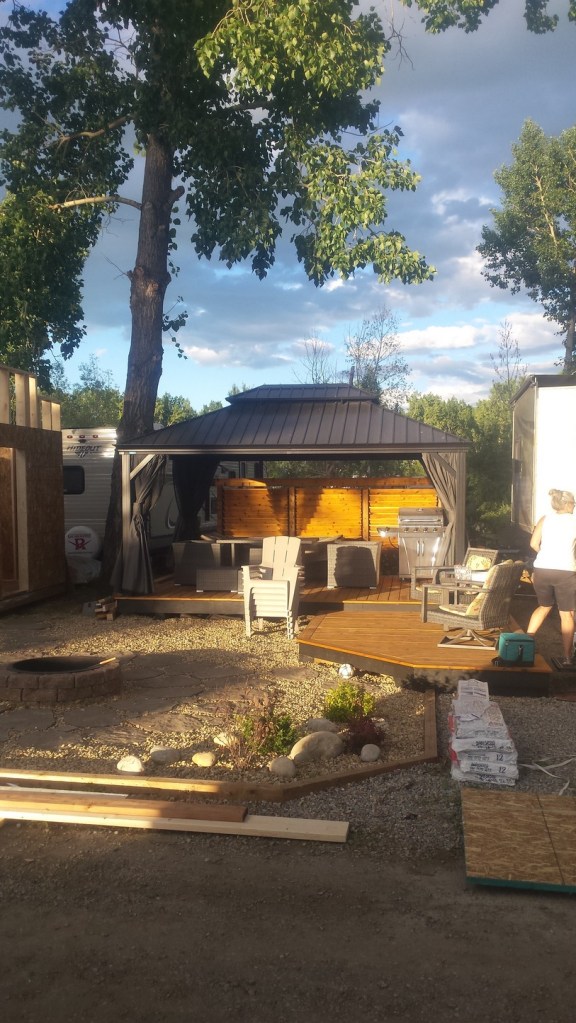 Getting close to being done. Link below is our site on the resorts web page they use for advertising. Proud that they thought it looked good enough to use when they have 300 lots to choose from. Next year it will even look better with more landscaping, signage, and colorful flowers. The Saloon girl coming out of the door needs to be in a can-can.