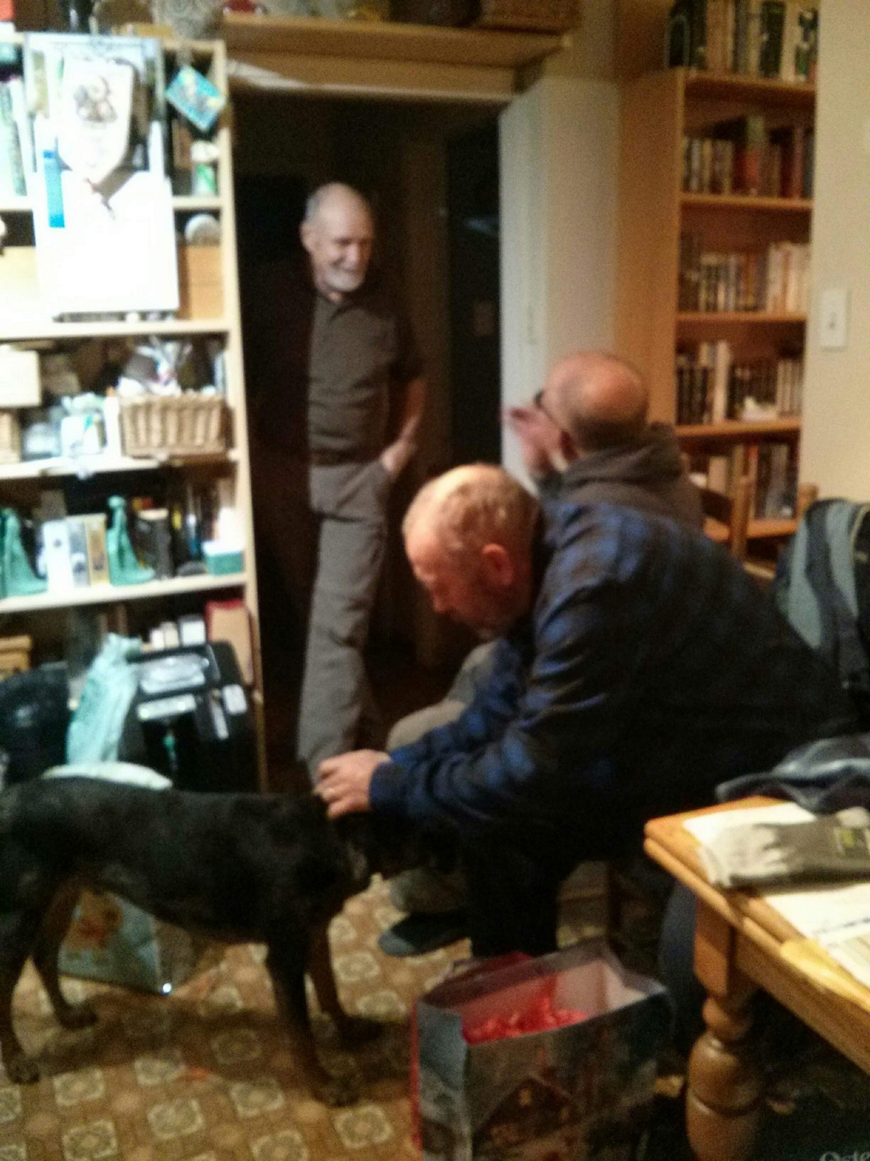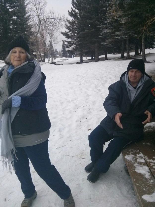 It snowed about 2 inches during our Christmas activities. We left after supper and headed to Jackie’s brother Dave’s place to see him and drop off the gifts from the Calgary group. I think we caught them just before bedtime as they seemed very tired. And they are young ! And it is Christmas so you aren’t allowed to be tired. Erin’s Mom who is struggling with cancer looked fantastic and was in great spirits. Erin’s Dad was very talkative and we had a great conversation about golf courses and things in general. Kristen was there also with her little pup Sampa which is super cute puppy. Visited for a while but we could tell they were looking forward to bed more than conversation. LOL