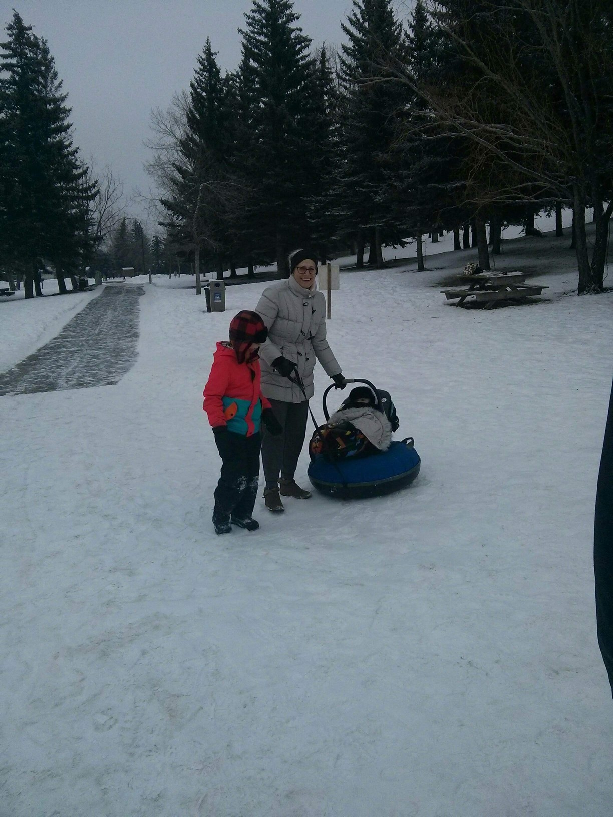 We all decided to go to Midnapore Lake to toboggan. This is the perfect place with a huge skating rink, lake skating and a wonderful safe toboggan hill. The girls and kids had an excellent time. August and Jackson loved the speed. Corey FLEW down the hill. Flash like. Nice also that the temperature was fine.