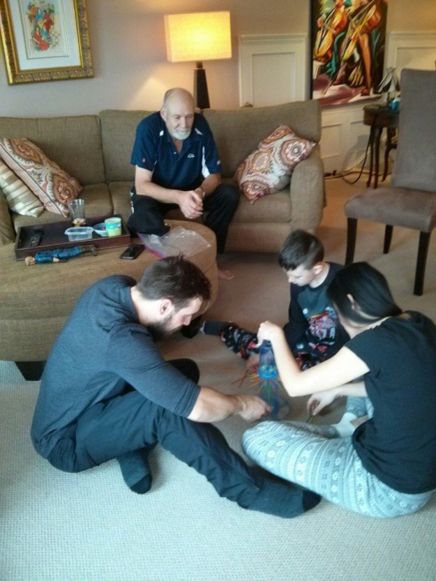 Victoria, Corey and Jackson arrived right after noon and Jessica with Penny, August and Atticus coming a few hours later. We played Kerplunk which was a fun game. Jackson was quite good at it and he was so good waiting for the others to arrive to open his presents.