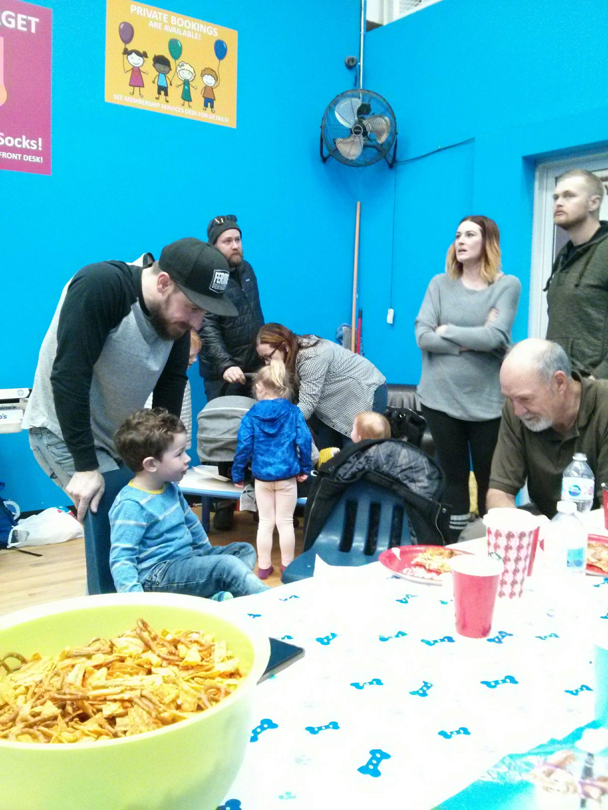 We had a good drive down to Lethbridge as today was Atticus’s first birthday party at the YMCA. I was a little surprised with the lack of snow plowing done as you had to be very careful passing and getting thrown around with the slush snow. Even salting wasn’t done on all sections but still a very easy drive. Funny as we arrived at the Claresholm Tim Horton’s Victoria and Corey pulled in with Hazel.
