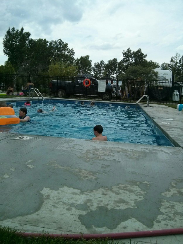 Out to our lot and when I got there a storm had just passed through. We had an early supper and then Jackson wanted to go to the pool. Lucky guy three times to the pool in one day. Funny thing is, he thought our outside pool had warmer water than the Acadia pool he took his lessons at. He had a great time at the pool as usual with a younger boy and same age girl to play with. This summer he will be a local resident. LOL
