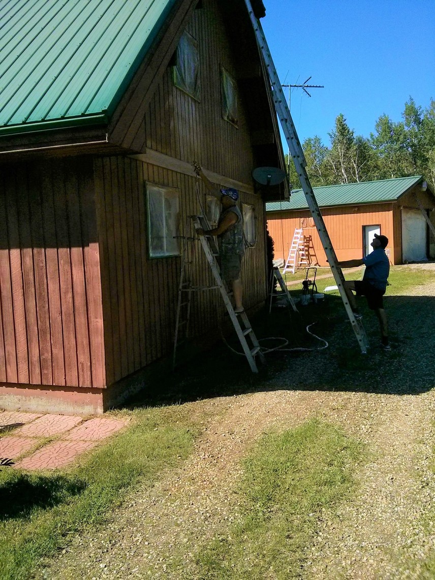 We were very fortunate to have Fred also show up.Anytime you can have extra hands helping it makes it easier. I loved having Jackie along not only for the sleeping partner but she was a huge help in getting us waters, food, cleaning up and painting a lot of trim and deck.Fred is a good painter and worker so was very very helpful. His fear of falling off a shaking ladder was quite obvious. Alfred was a circus performer on that ladder. You get 30 ft plus in the air that ladder shakes and shakes. I did not like the height at all. Alfred did all of the HIGH peaks which Fred and I welcomed.