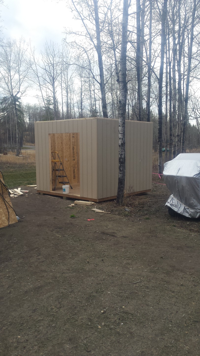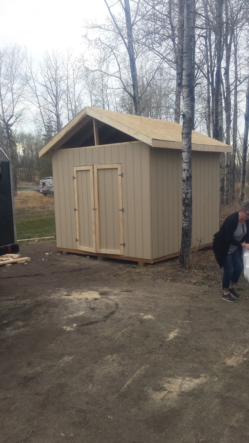THIS IS A SHED not a big box plastic thing or a 2 x 3 framed mini shed with 6 ft tall walls. This is a 100 sq ft tiny house we built. 2 x 6 rafters, fibreglass shingles, eaves, 8 ft high walls, 6/12 pitch which puts our high point close to 11 ft high. Built like a $#@$ brick house. Entry doors are the weak point but that can be corrected quite easily. Took as long to build this as a garage package.