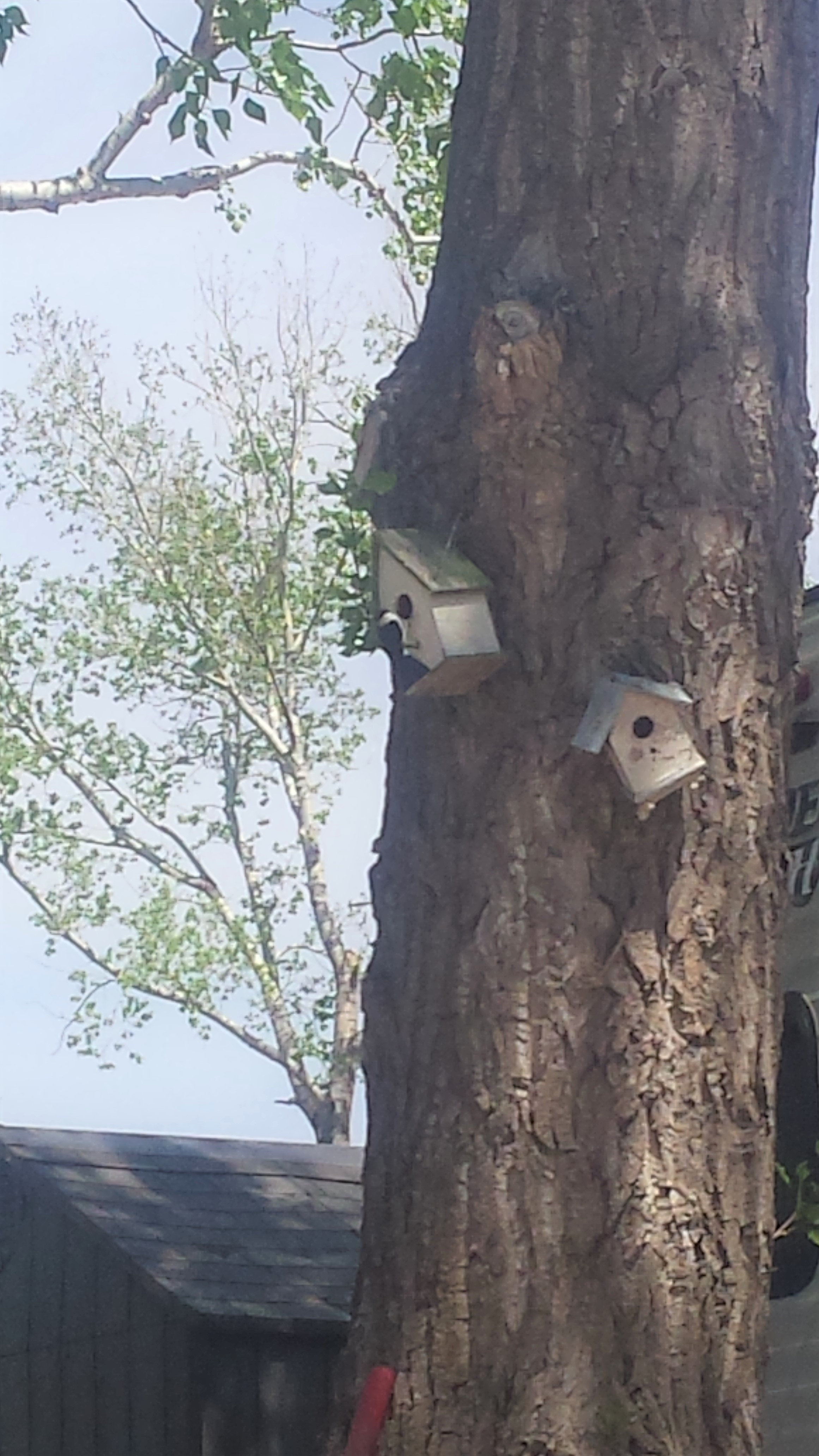 Worked on the Arbor privacy fence and had lot of help. I had Jackie using the drill which was good. She even had a supervisor all day as this birds, house was only feet away from us on our tree. The previous owners left two houses in the tree. I don’t know what kind of bird this is but it was beautiful. It had a blue hue, saturation, and brightness that reflected light with it’s blue body and bright white head, yet was sparrow sized. Careful Momma bird I think.
