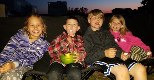 Met Jessica and Penny at Boston Pizza for supper. The kids all were great and the food good as normal. Hot out today and the girls sat outside with a fire. I went to bed around 10 oclock and slept like a baby. A few days of hard work with early rise times wears you down. We all slept in to 9 am which was wonderful.