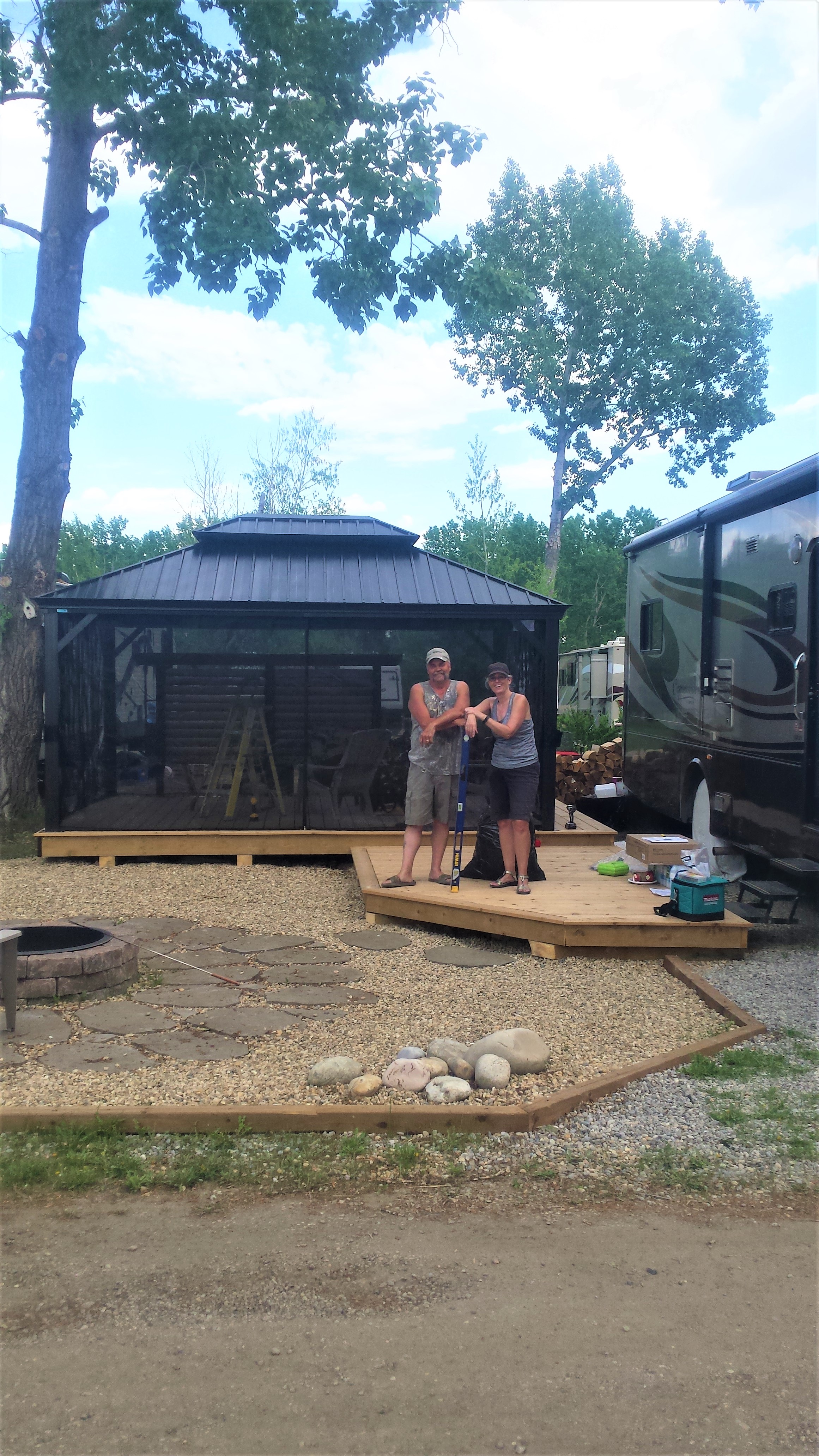 I was hoping to get started on the shed but it was beer time. I love the fact that Terry & Fred have adopted the “easy rv life” as supper at 8 pm or later was normal for them. Jackie & I are creatures of habit and yes we do eat by the clock sometimes rather when hungry but I find eating late can cause heartburn, and difficulty in sleeping . As usual Fred & Terry fed me extremely well every day.