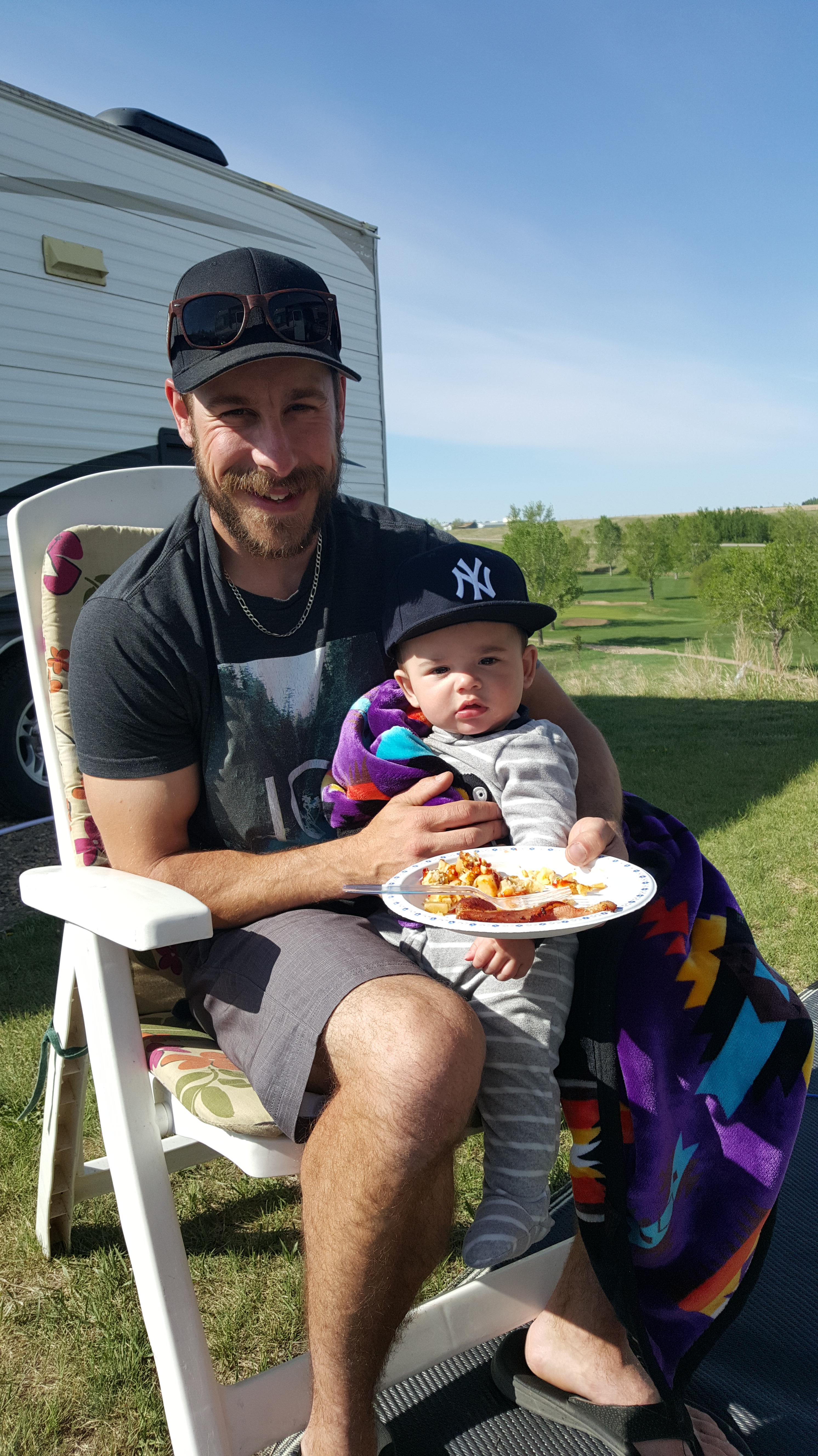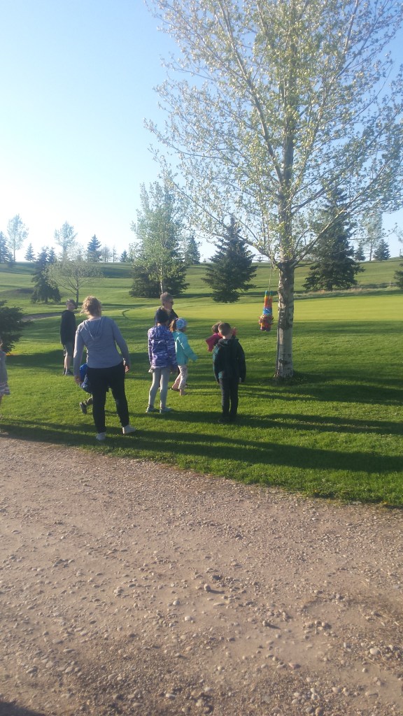 Terry had a great idea and for the kids she hung a pinata. With a plastic bat everyone had a chance to swing and miss. We got lucky as it didn’t really break up until the last kid swung. Filled with Candy the kids loved it. Speaking of kids they all had a spectacular long weekend Biking, playing in the sand, hide and seek, spy, robbers and cops they played it all. They even had a pool to play in. Troy went from camper to camper to collect 5 gallons of hot water for them. Jenny had blow up things for the kids to roll around in. All was good until the Dads decided yo get into them and roll down a large hill on one fairway. Both blowups blew up and one Dad hit his head and had to take aspirin to cure his headache.