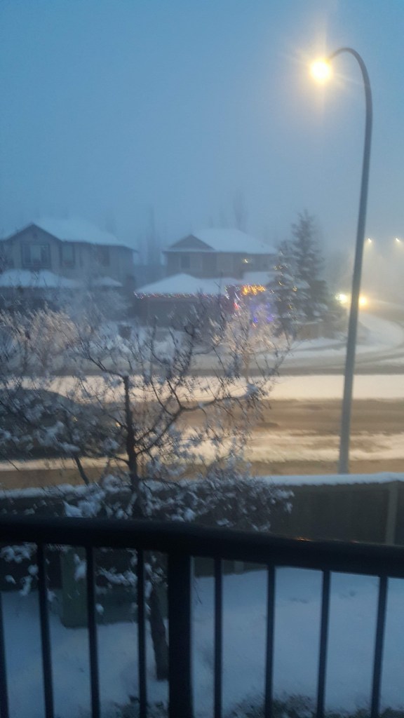 Twas the night before Christmas. Snow and fog for a pretty sight if you like this kind of thing. lol