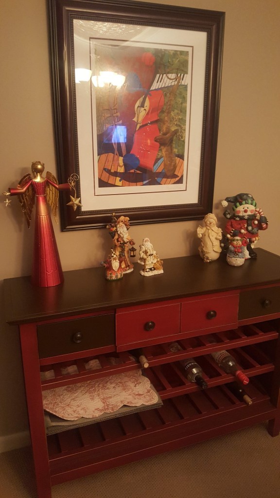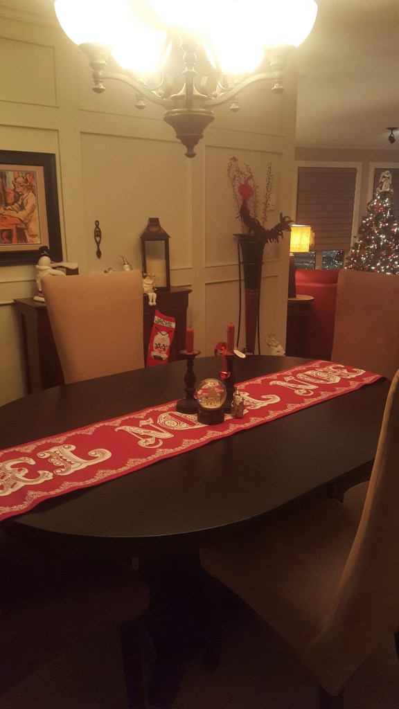 Jackie was Christmas decorating mad today. She is pretty good at finding just the right spot. I am one of those that refuses to accept no decorations or tree for Christmas no matter cost or short time span. This year the decorations will be from December 1st to January 2nd so that is very good.