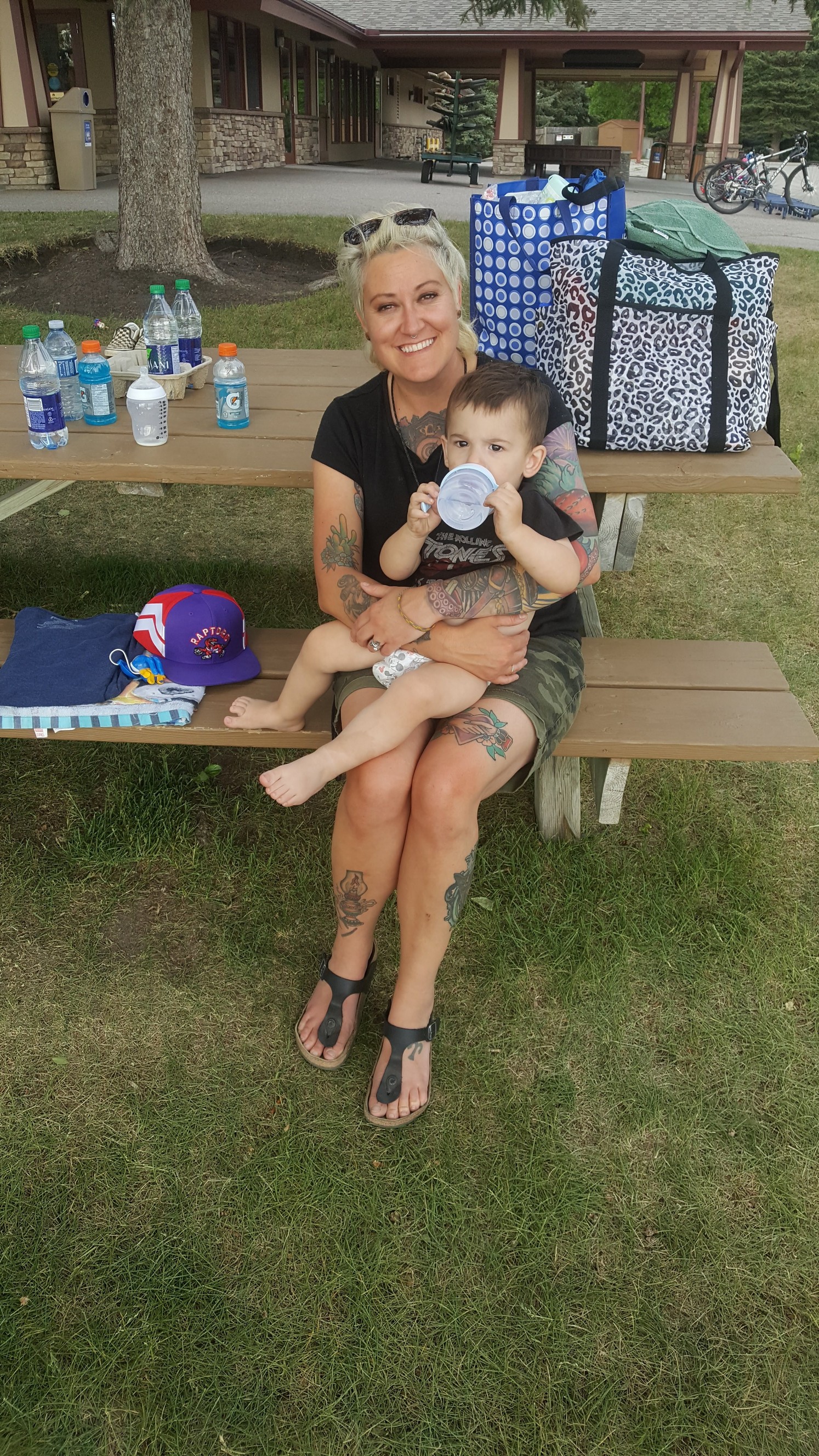 Jackson slept like a log in his bed for 11 hours not waking up until I asked him at 10am. We rushed a bit to get our Free Canada Day pancake breakfast from the park. Two pancakes, two saugages, hash brown and juice was excellent. Excellent food, well organized with loads of seating in the sun or shade.