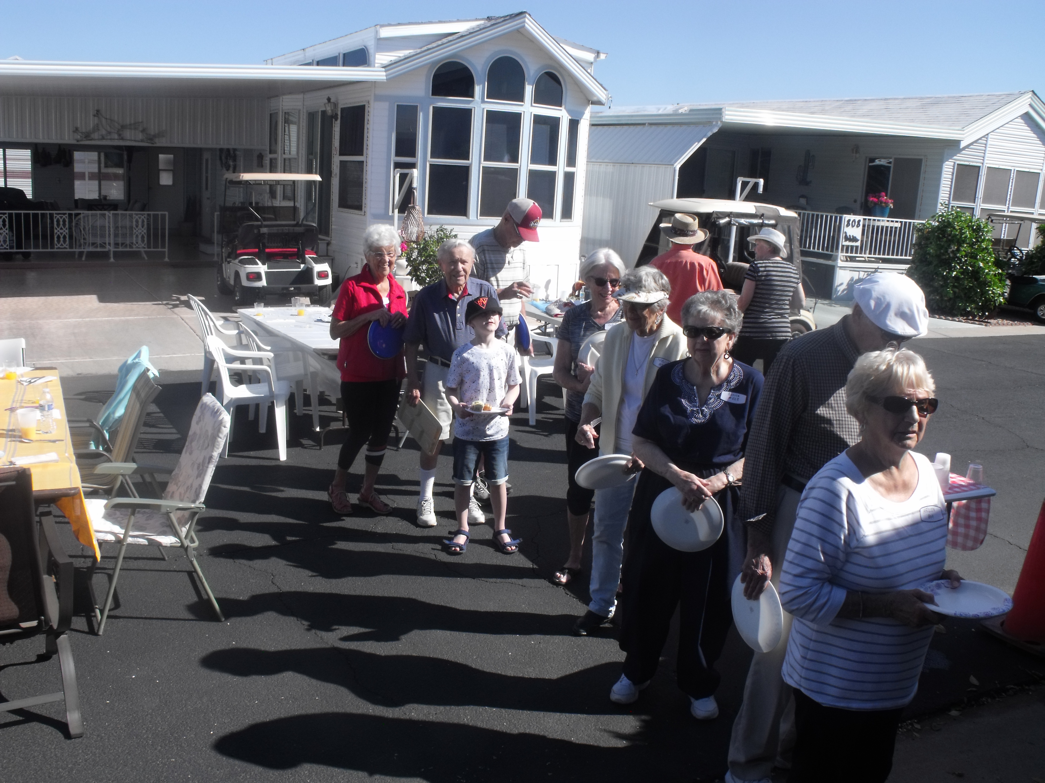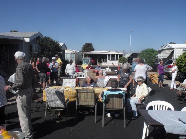 We had a great block party. The Willards, the Ferris’s with Caroline and Ron were responsible for the last party of the season. The party turned out wonderful. I cooked 25 pounds of sausages and along with all of the other brunch items brought it turned out wonderful. I like the brunch idea for a pot luck. We had everyone out on the street sitting except for a few of the older ones in the shade. A hot day. One miscalulation we made was Monday was garbage pick up day. Luckily for us the party started at 9 am and the truck drove past at 8:30 am. Whew ! Great company, good speeches from the guests, and we had a fun baseball bean bag toss event. The “odd” side of the street won. We are on the ODD side. LOL