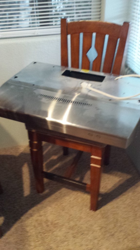 Her second super find is a Broan Stainless Steel charcoal filter with led lights range hood. These things are just over the $200 mark so getting a almost new one at $35 is a great deal. This one is even easier for me to install. I will build a stack up from it out of MDF and paint it teal which will look good with our cushions and barn wood. Great find