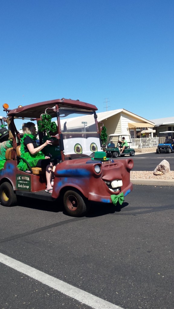 A great St Patty’s Day parade. We had more entries this year than ever with some wonderful decorated carts with quite a few intoxicated travelers on board.
