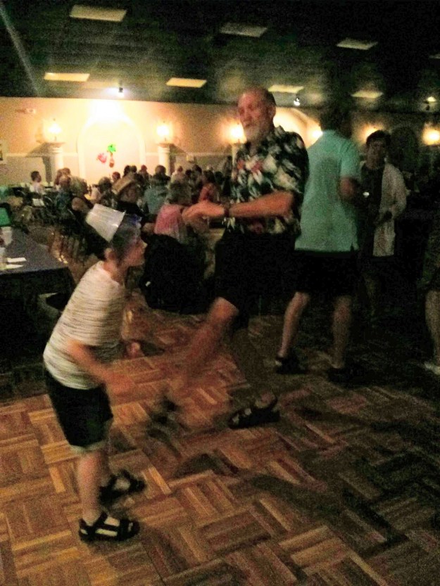 Jackson had a great time at the “Last Dance of the Season” . The hall was completely packed which means 1000 people. The food was good,not great but most people like pulled pork with coleslaw. They put 1000 people thru the line very fast. The band was great with the theme being “Beach Boys” music. I prefer C & W dancing but these are still fun. We had Jackson up doing the Twist and Jackie had a few other swing dancing with him.