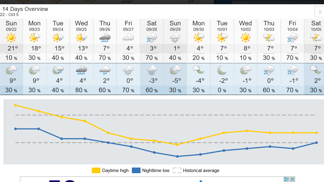 Look at this weather forecast. I hate cold weather and this is ridiculous. Makes me think about staying 180 days in the States as this is just plain horrible. We have had more rain and cold than EVER this year. Only 7 days above 25 degrees and 71 day with rain. Now this. The Almanac says a horrible winter ahead for Alberta. That just isn’t fun.