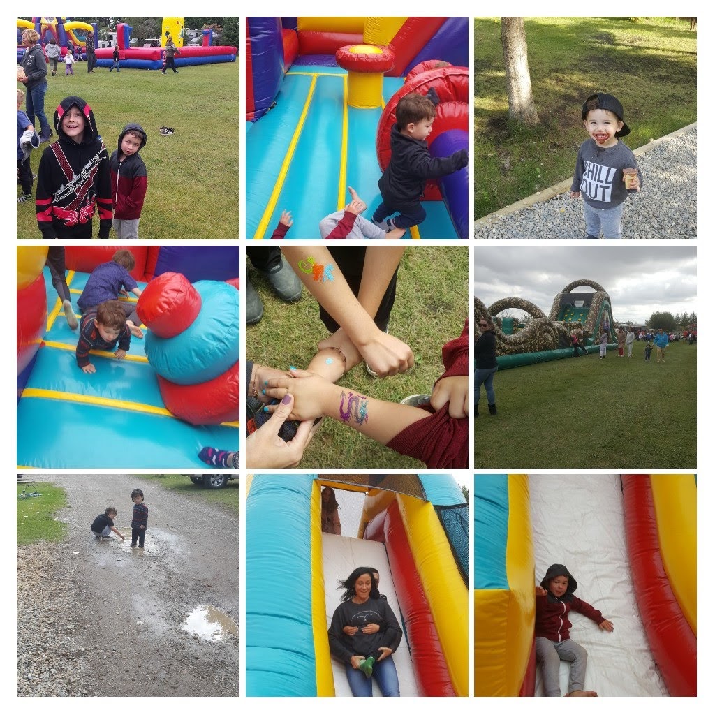 Next day if kids loved Halloween how about Family Carnival? The park does another wonderful job with this. This year we had : A long army obstacle course, a huge bouncy castle slide, a large tug of war blow up, a dunk tank, horseshoes, face painting, tattoo’s for the kids, popcorn, freezes, and two commercial food trucks. All free of charge except for the dunk tank which was raising money along with the 50/50 tickets. $2200 worth of tickets sold which is going to make for a great party again next year along with our free pancake breakfasts, and cheap hotdog lunches.