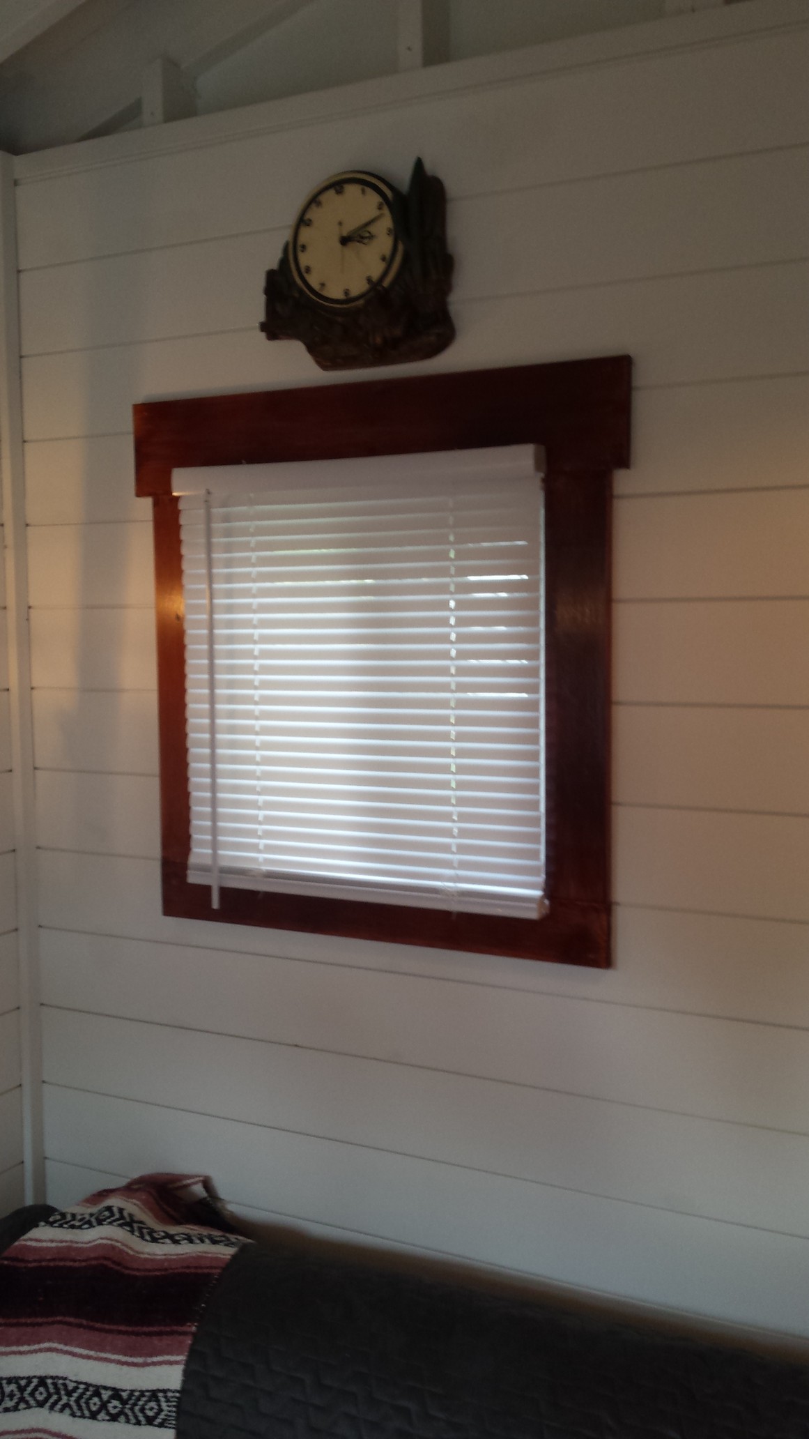 Whipped out to Oasis and installed my mini blinds in the Saloon. I wanted to cut them to fit inside the openings but they will only cut the expensive brand. So rather than spend $45 per blind I went with the outside install method which when hung look great. These were only $13 per blind. I like that.