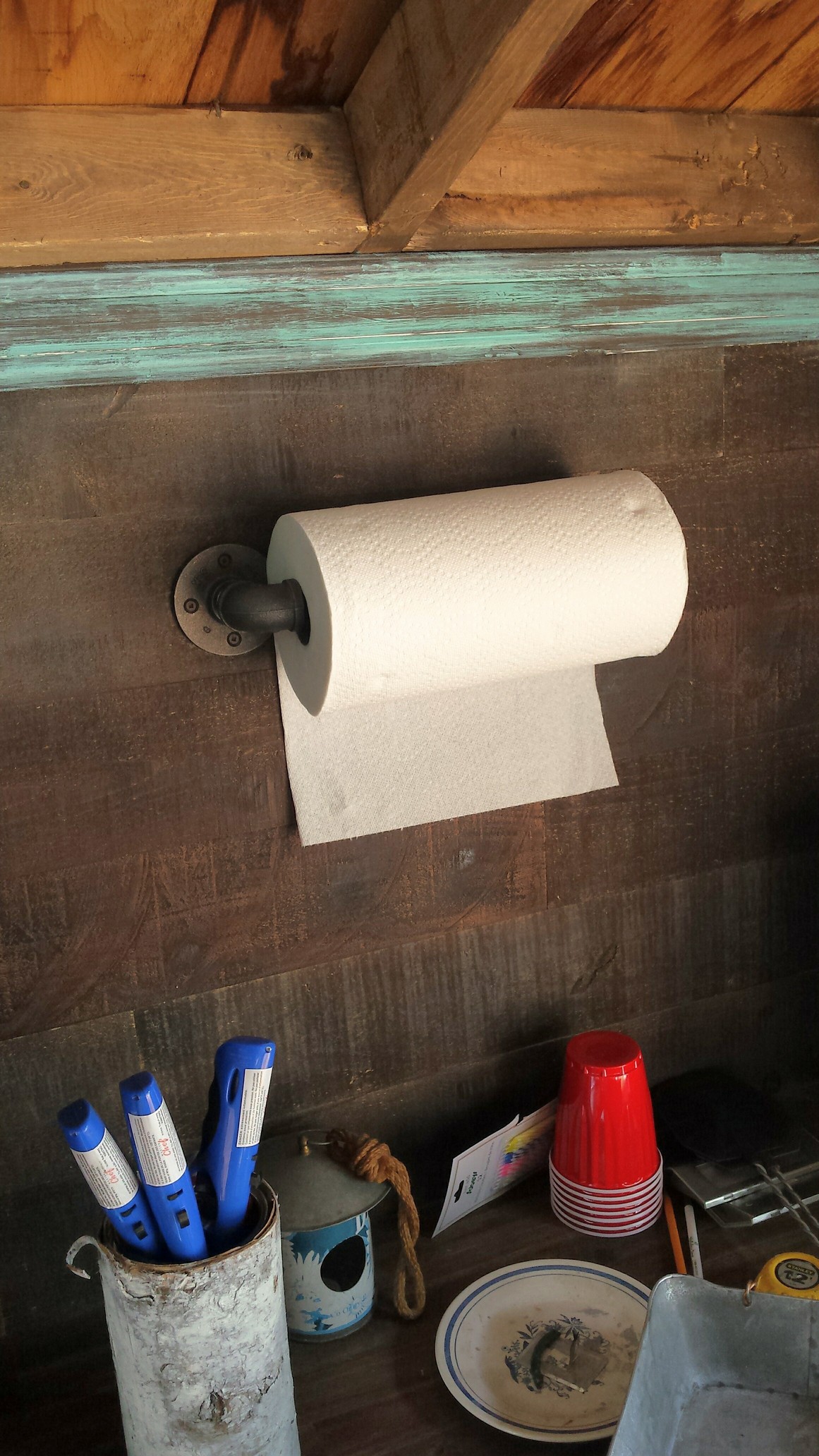 Two other projects for today. First I installed my black annealed pipe towel holder. I went to Lowes and Depot and they have the same stock. The black color on the nipples is totally different from the elbow, cap and flange. I still love the look and got it installed.