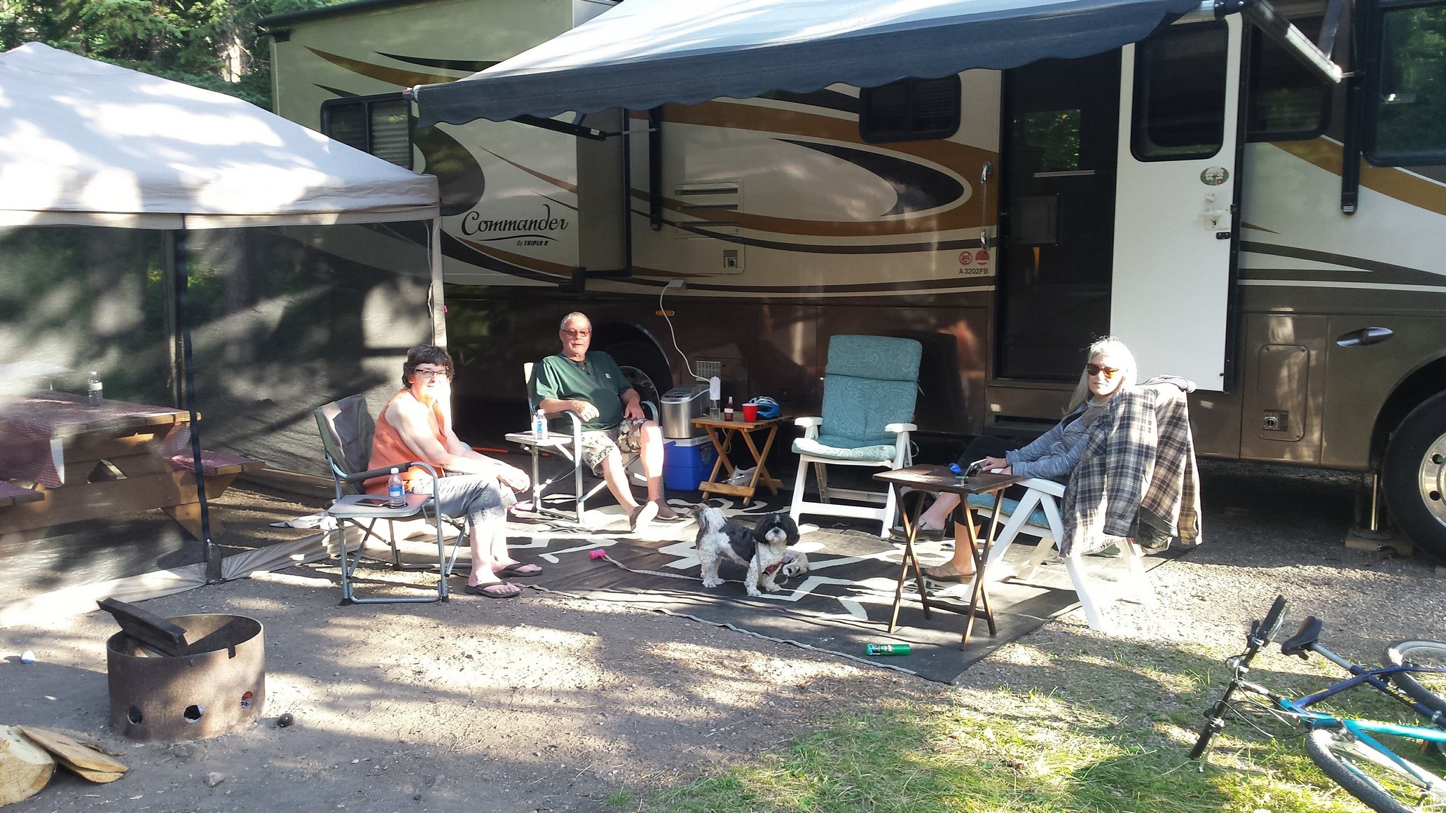 A nice camping get together with Larry & Anita Geddes from Med Hat. They are fun people to camp with. They like to bike, play cards or crib ,have a dog and are fully set up camping guru’s.
