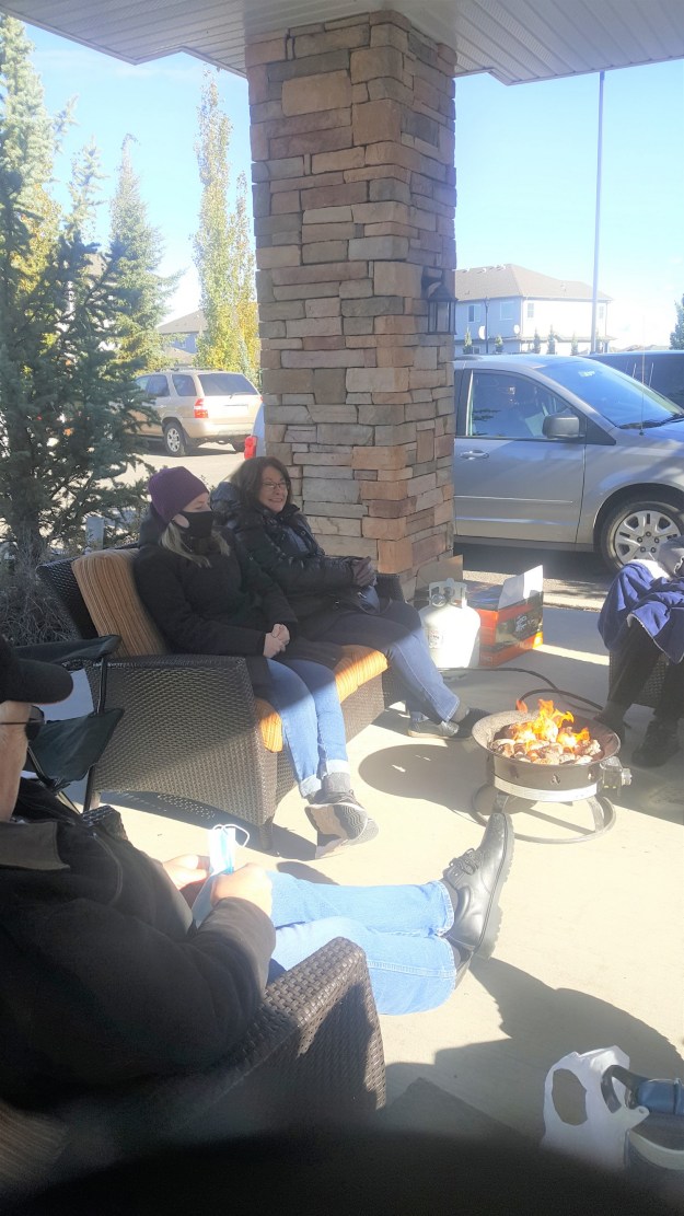 Social distancing, masks and outside made it a safe gathering. The senior homes HAVE to be careful. This was a Thanksgiving meal with Mom in Edmonton along with Alfred, Mary, Darlene, Jim and Kari. Everyone brought their own food to eat. I whipped to Swiss Chalet for a Thanksgiving special dinner they had for us and Mom.