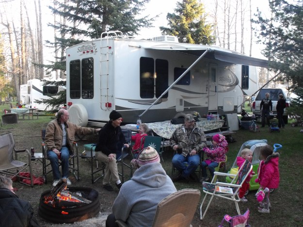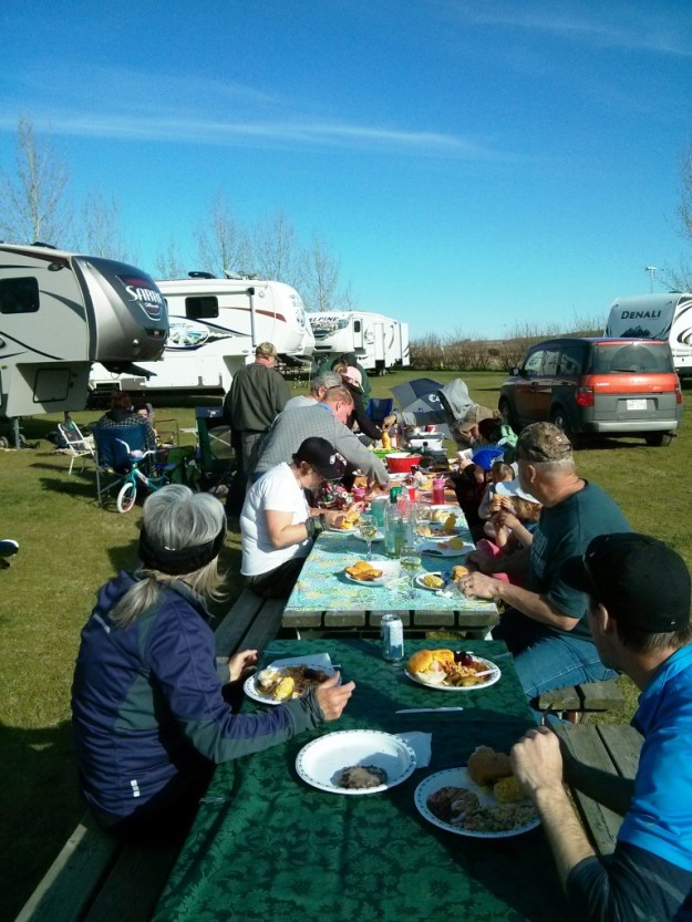 Jackie came out to the lot for supper which was nice. We had a great evening with supper and walking Daisy again around the park. Then it started to get windy and rained very heavily. Another ugly spring we have had. If I had been on the course I would have been soaked again. LOL .
